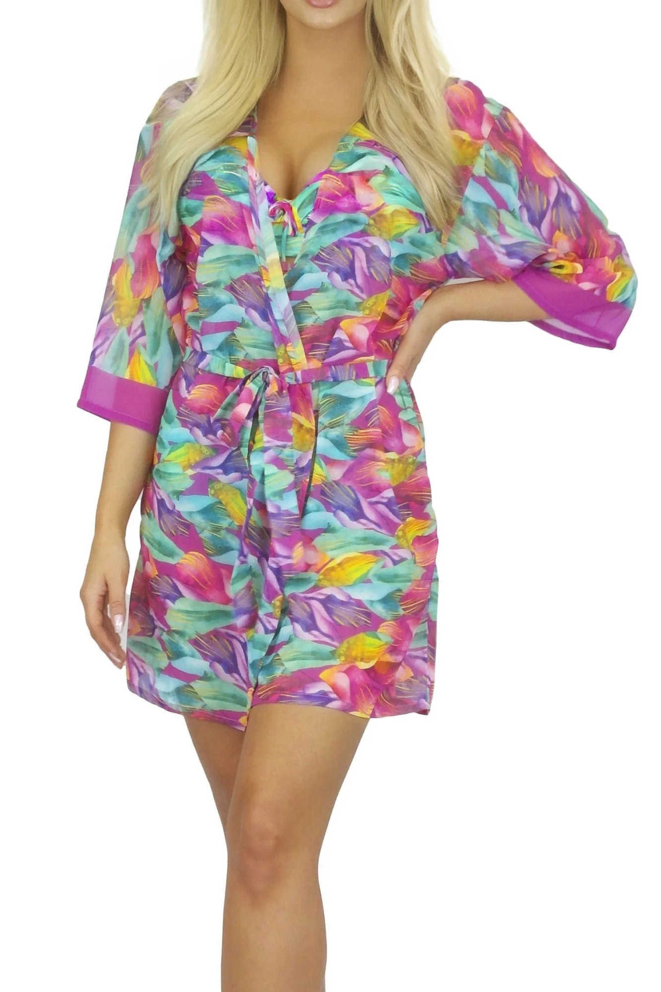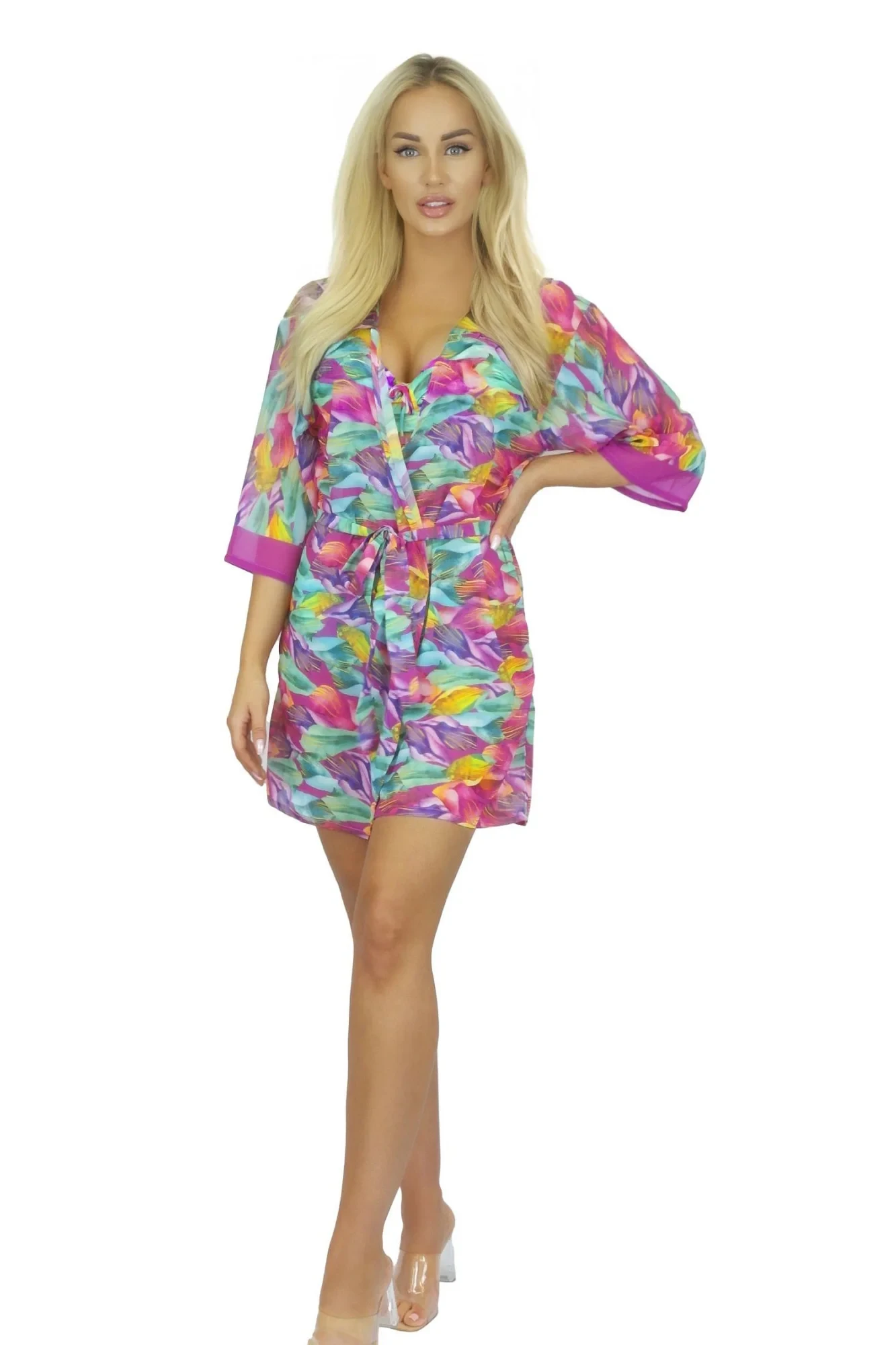 Pareo šátek 11D80SZ 30 SELF - z jemné vzdušné látky - se vzorem - tříčtvrteční rukávy - odolná proti UV záření - nemačkavý materiál