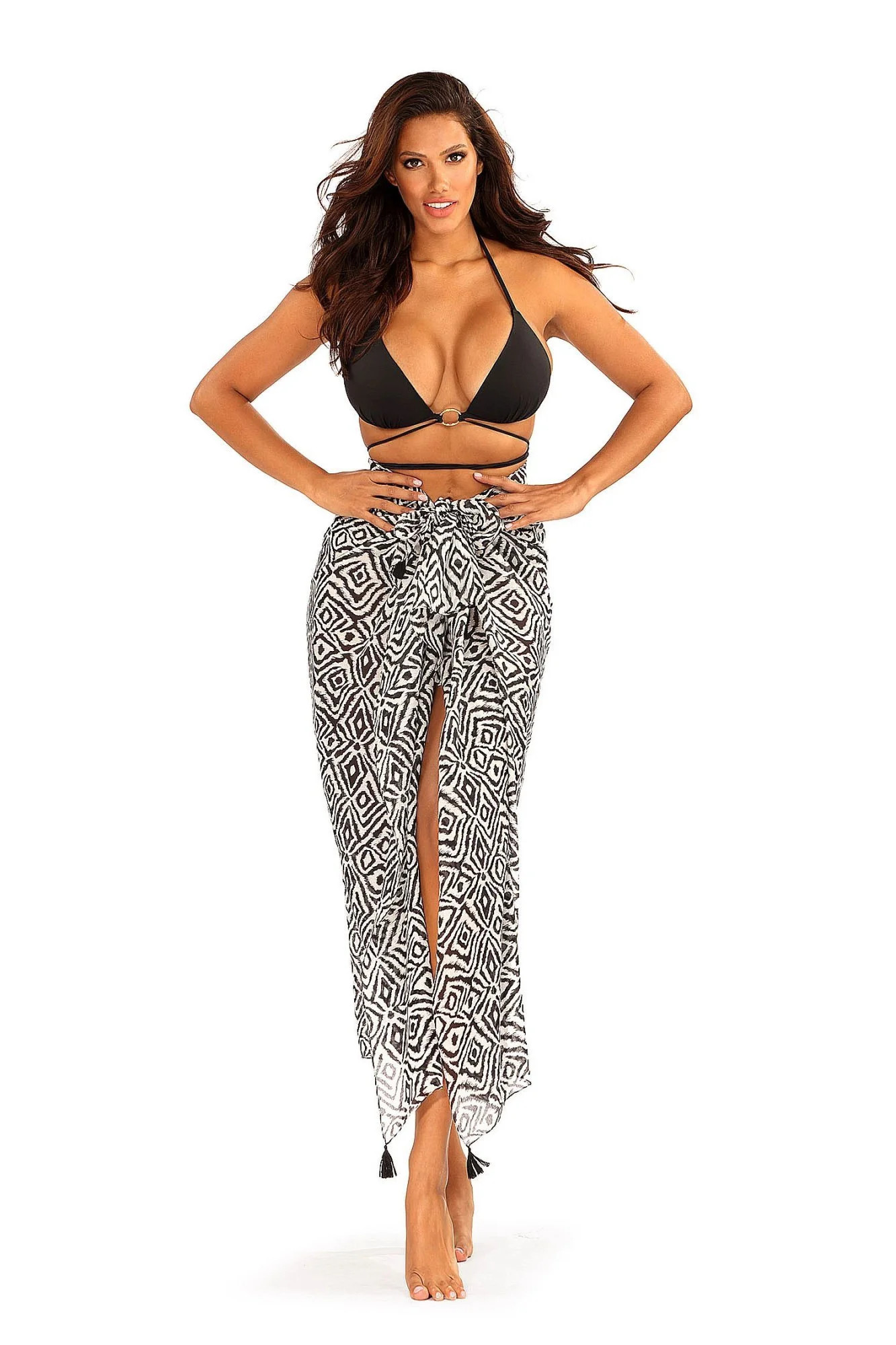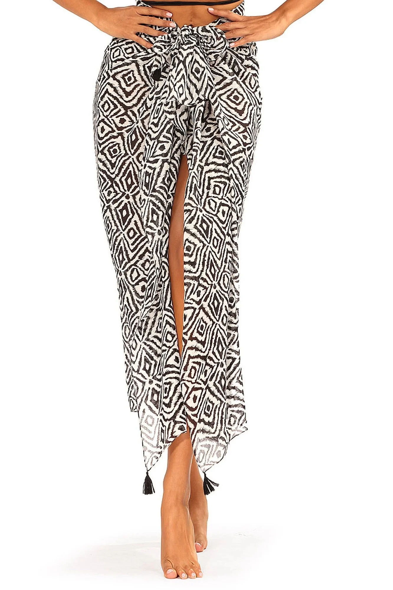 Pareo šátek D95CH 25 SELF - vícebarevná barva - z jemné vzdušné látky - se vzorem - odolný proti UV záření - nemačkavý materiál - zavazování se třpytivou sponou