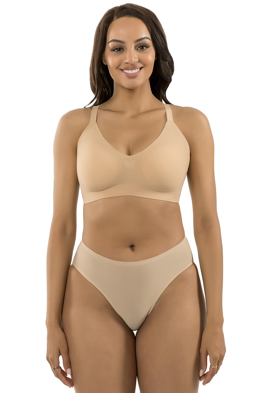 Podprsenka Parfait, model P2400, s nastavitelnými a odnímatelnými ramínky, kovové háčky na ramínkách, zapínání na háčky a oka, zadní díl, vyrobená ze 48 % nylonu a 52 % spandexu, bezešvé okraje, pro ženy.