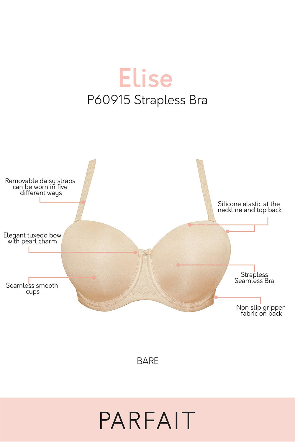 Podprsenka Parfait, model P60915 Elise, s drátky, které podporují a tvarují prsa, nastavitelná a odnímatelná ramínka, kovové háčky na ramínkách, zapínání na háčky a oči, zadní díl, vyrobeno z 84 % polyamidu a 16 % elastanu, pro ženy.