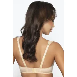 Biustonosz marki PariPari. Model Sophia. Posiada druty, które podpierają piersi odpowiednio je kształtując. Fiszbiny pionowe osadzone na bokach. Produkt posiada regulowane ramiączka bez możliwości ich odpięcia. Haczyki do ramiączek metalowe. Biustonosz zapinany na haftki. Miejsce zapięcia: tył. Produkt został wykonany z 78% poliamid, 17% elastan, 5% bawełna. Produkt damski.