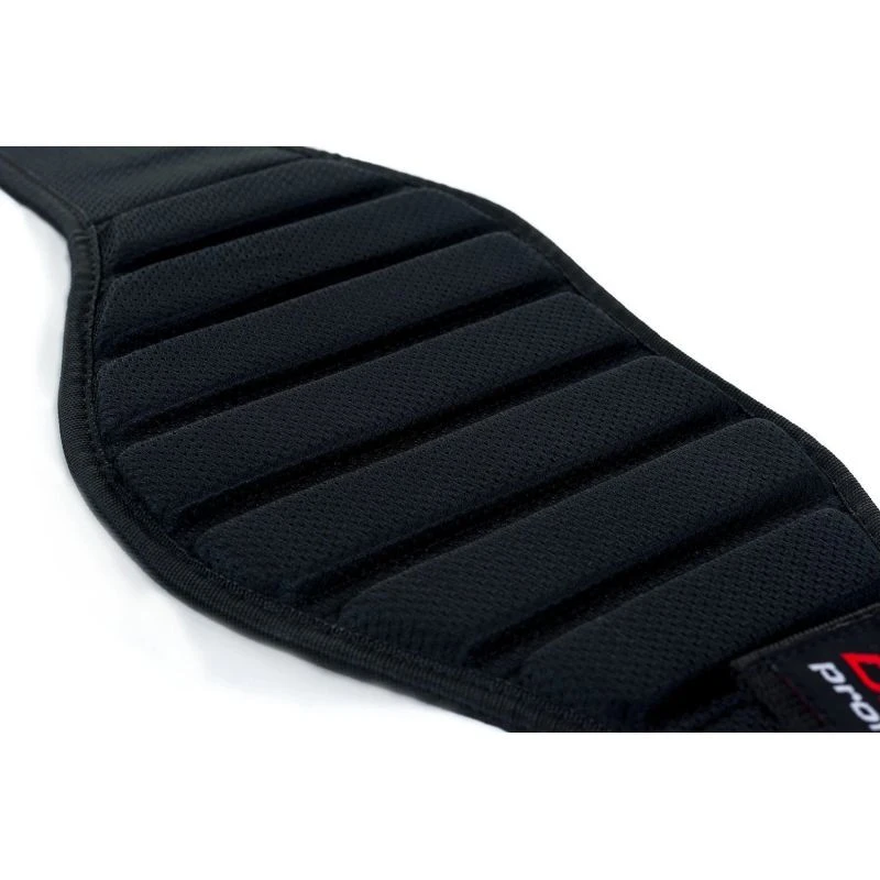 Pas doskonale przylega do ciała, chroniąc i usztywniając odcinek lędźwiowy kręgosłupa. Dodatkowe wstawki wykonane z pianki o zwiększonej twardości zapewniają właściwy ucisk pasa oraz jego stabilność podczas wykonywania ćwiczeń. Odcinek lędźwiowy pasa ma aż 20 cm wysokości dzięki czemu doskonale stabilizuje część lędźwiową kręgosłupa.