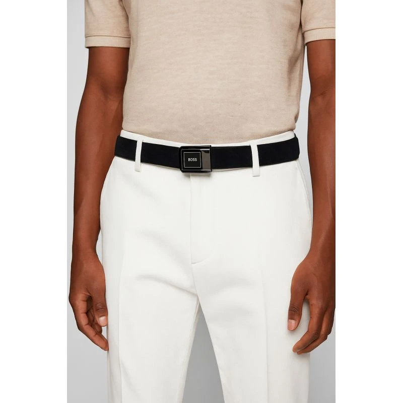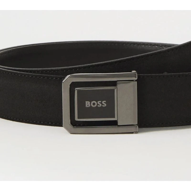 - Kovová přezka s logem BOSS - klasická stříbrná přezka s matnou povrchovou úpravou a vyrytým logem značky dodává celkovému vzhledu nádech prestiže.