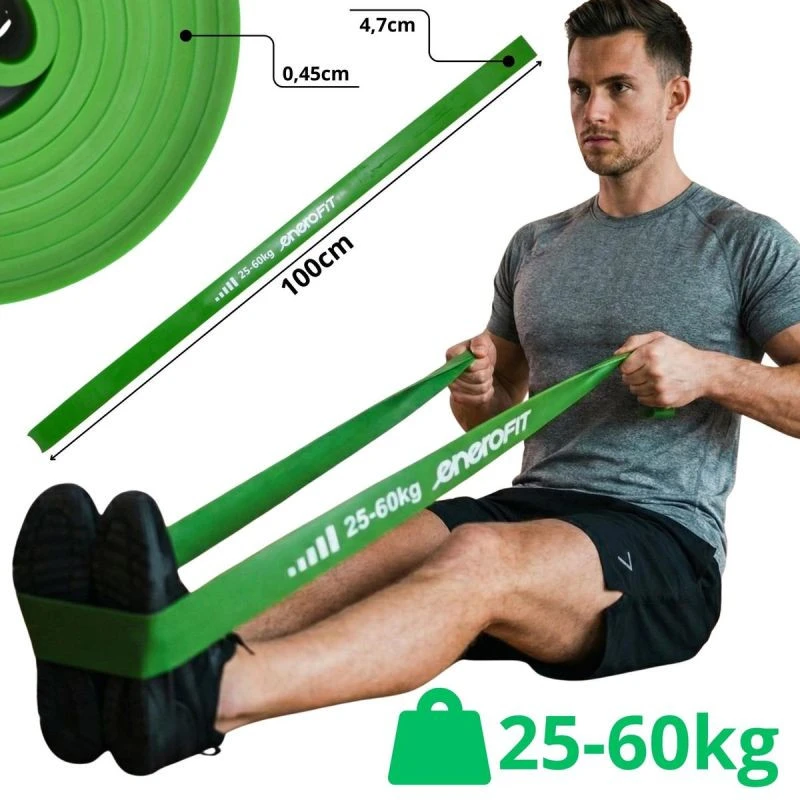 Jste připraveni na extrémní výzvy? Power Band 25-60 kg Green ENERO FIT je vaší vstupenkou do světa síly bez kompromisů - trénujte tvrději, rychleji a s plnou kontrolou, ať jste kdekoli!