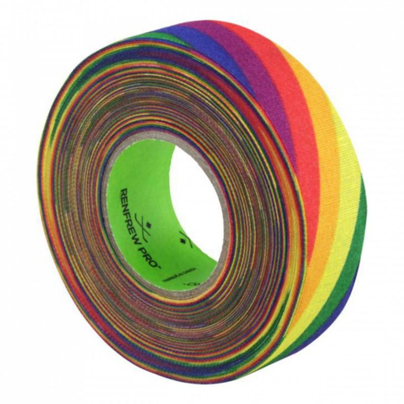 Páska na hokejky Renfrew Speciálně navržená pro dnešní kompozitové hokejky, duhově zbarvená textilní páska Renfrew Pro-Blade obsahuje pokročilý vzorec lepidla nanesený na podklad z polyesterové/bavlněné tkaniny, který poskytuje robustnější textilní pásku se zvýšenou odolností proti opotřebení.