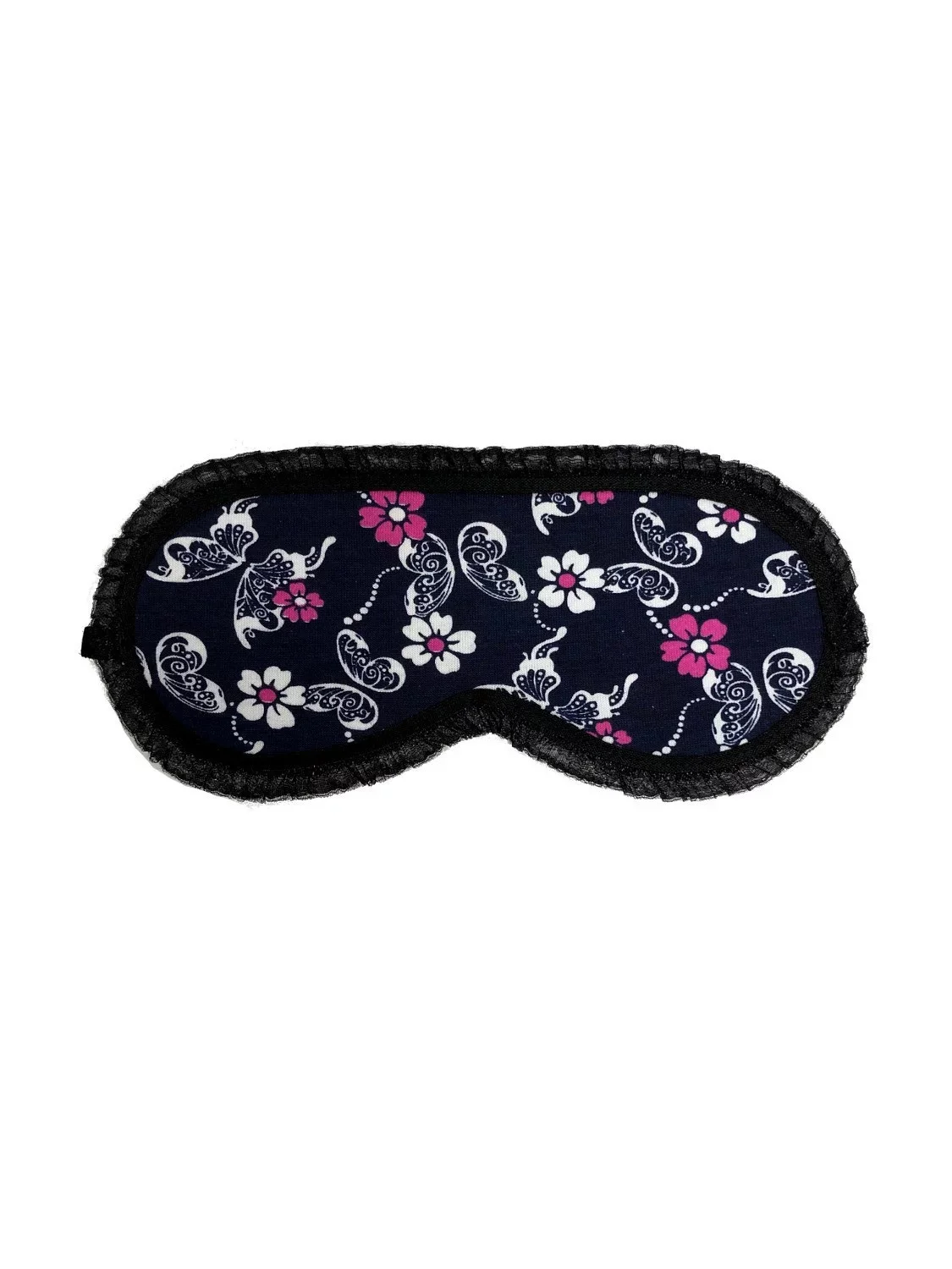 Páska na oči v tmavě modré barvě s květinvým motivem.
