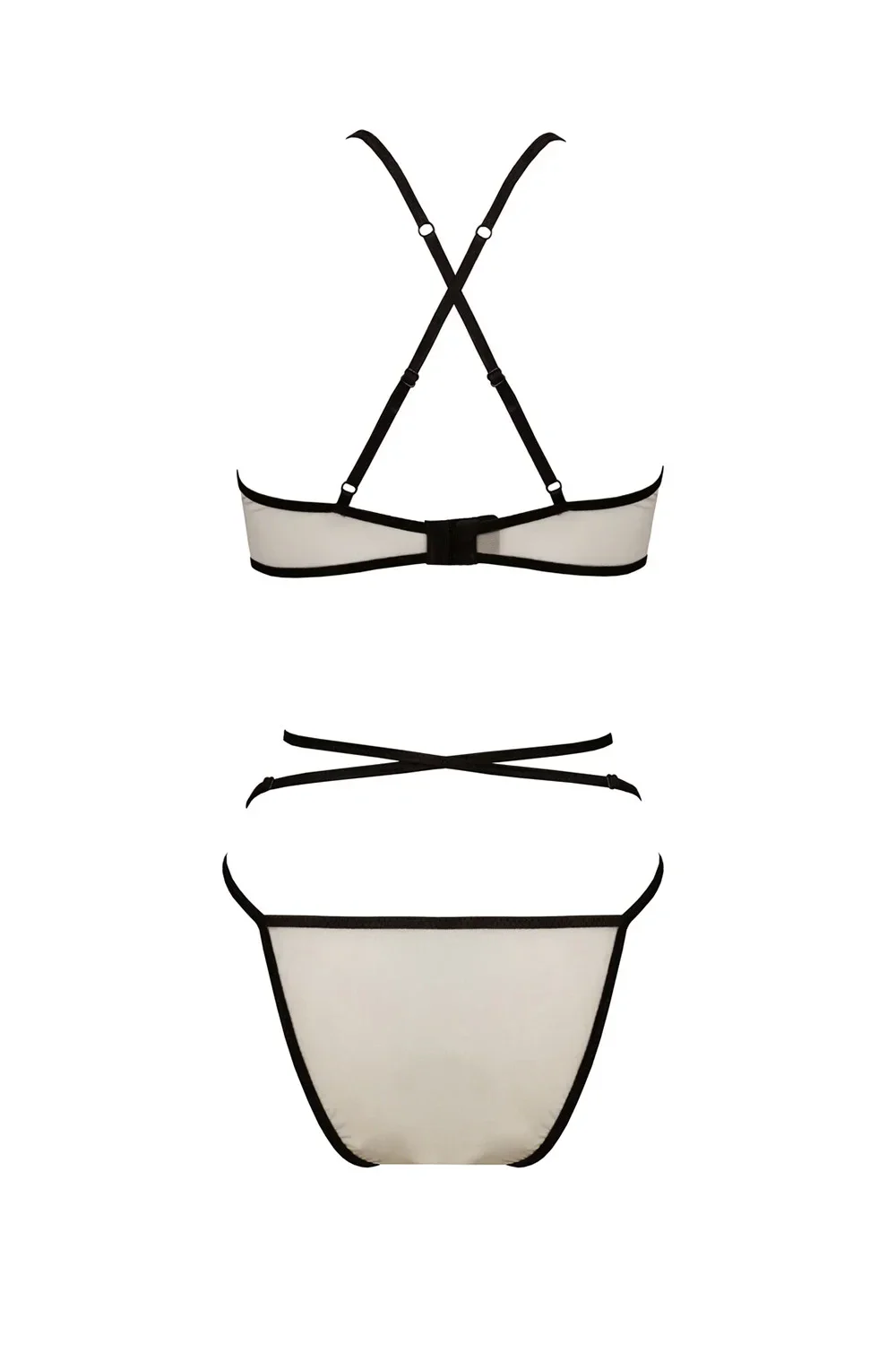 Noční prádlo značky Passion, model Chika set. Výrobek je vyroben z 85 % polyamidu, 10 % elastanu, 5 % polyesteru. Místo zapínání: na zádech. Noční prádlo se zapíná pomocí háčků a oček. Má drátky, které podporují prsa a správně je tvarují. Výrobek má nastavitelná ramínka. Dámský výrobek.