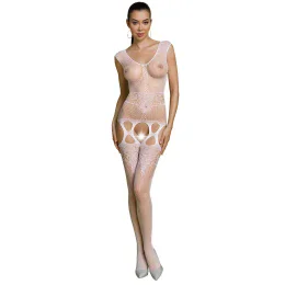 Body značky Passion, model ECO BS014. Výrobek je vyroben z 83 % z regenerovaného nylonu, 17 % z rozložitelného elastanu. Dámský výrobek. Spodní prádlo se vyznačuje rozparkem v rozkroku.