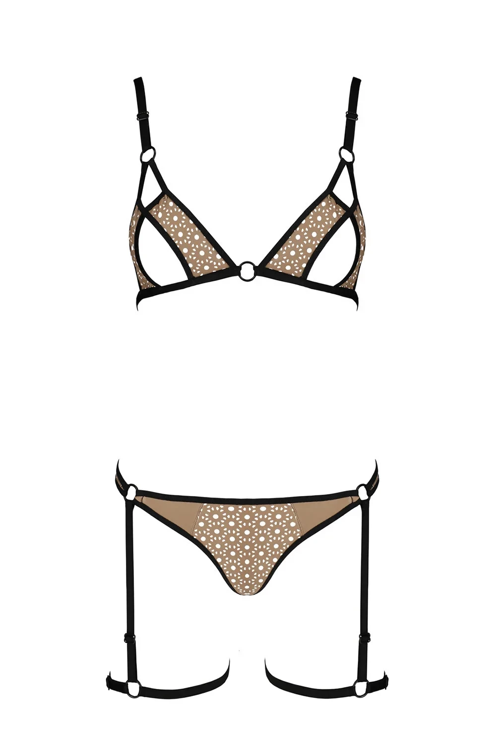Noční prádlo značky Passion, model Gabi set. Výrobek je vyroben z 60 % z polyuretanu, 40 % z polyesteru. Místo zapínání: na zádech. Noční prádlo se zapíná na háček. Výrobek má nastavitelná ramínka. Pásek s ramínky. Dámský výrobek. Ramínka jsou nastavitelná.
