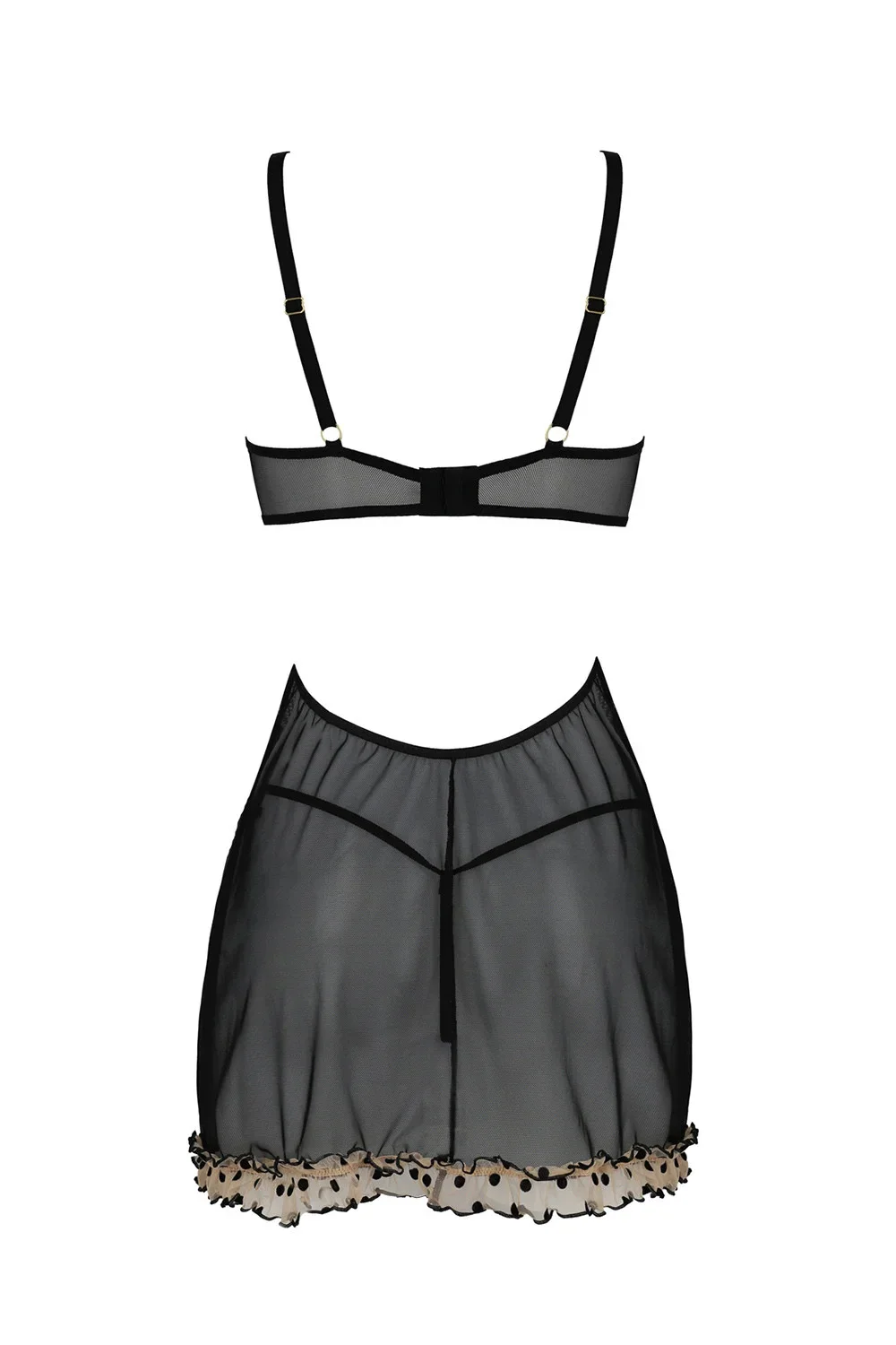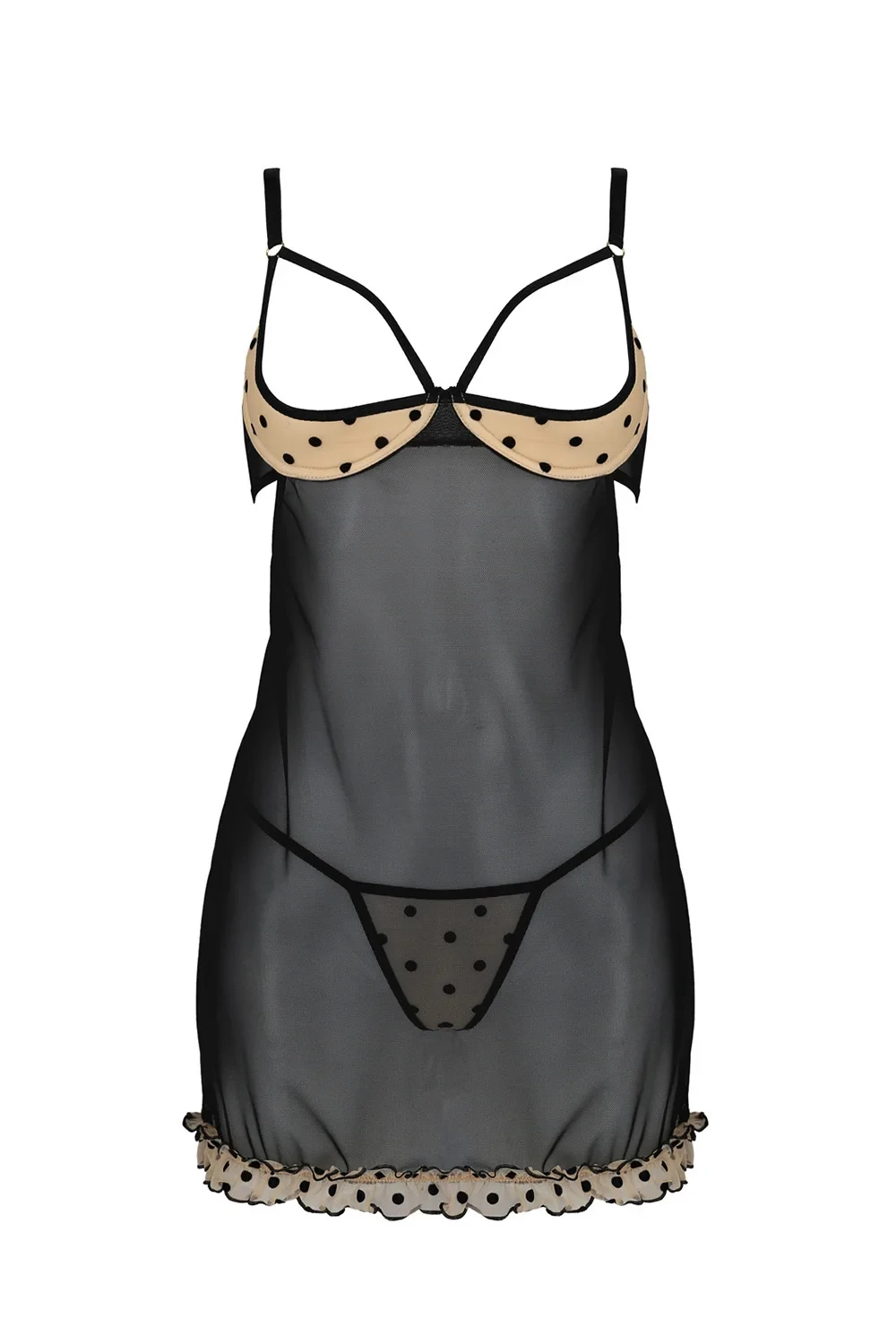 Nocna marki Passion. Model Marina chemise. Produkt został wykonany z 85% poliamid, 10% elastan, 5% poliester. Produkt posiada regulowane ramiączka. Miejsce zapięcia: tył. Nocna zapinany na haftki. Produkt damski. Majtki biodrówki.
