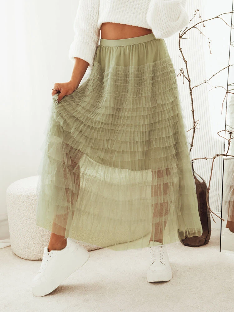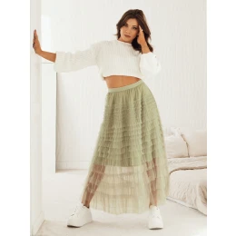 Tylová sukně v maxi délce je nepřehlédnutelným trendovým kouskem, který díky své módní délce, elastickému pasu a zajímavému prošívání tylu vytváří stylový celek. Skvěle se hodí k elegantnímu i ležérnímu vzhledu, k dostání ve třech barvách.