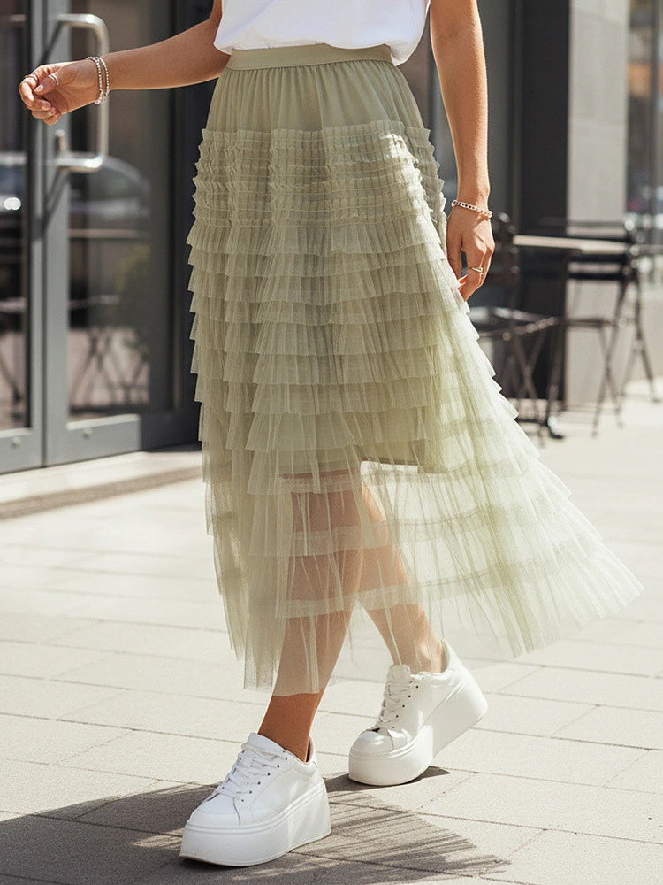 Tylová sukně v maxi délce je nepřehlédnutelným trendovým kouskem, který díky své módní délce, elastickému pasu a zajímavému prošívání tylu vytváří stylový celek. Skvěle se hodí k elegantnímu i ležérnímu vzhledu, k dostání ve třech barvách.