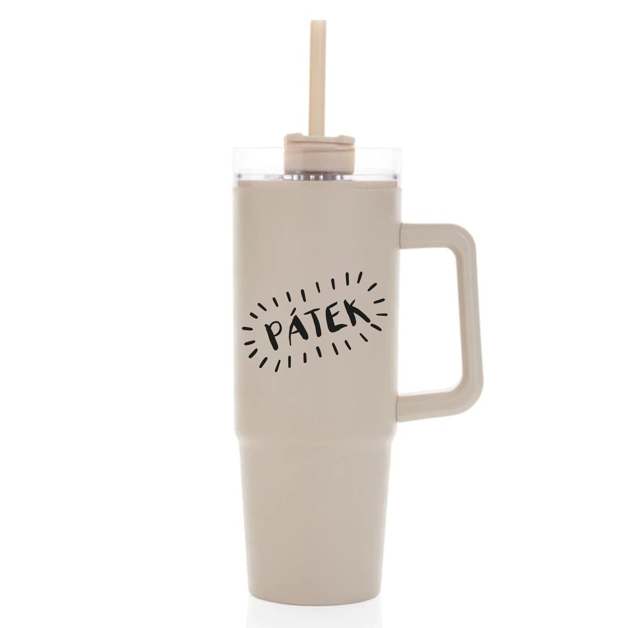 PÁTEK - béžový cestovní hrnek s průhledným víčkem 900 ml