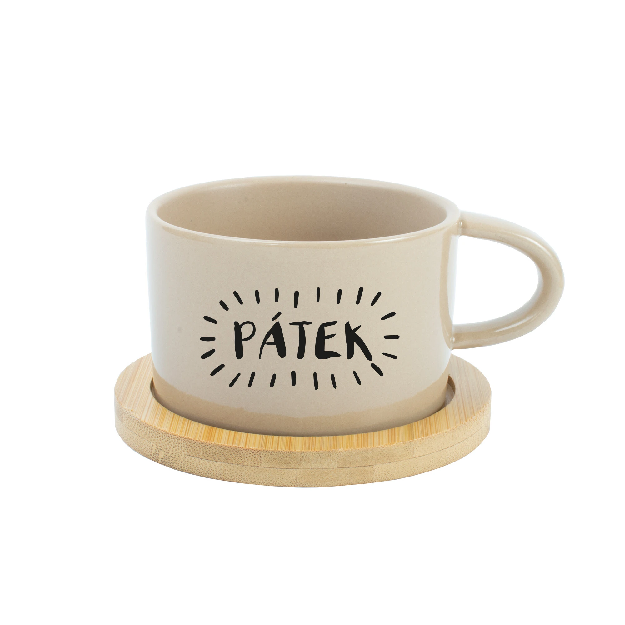 Roztomilý keramický hrnek typu makronka o objemu 200 ml s bambusovým podtáckem. Na hrnku najdeš trefný nápis „PÁTEK“ – ideální připomínka toho, že už to máš za pár! Perfektní na ranní kávu, čaj nebo chvíli klidu u oblíbeného nápoje. Skvělý dárek pro všechny, kdo milují ten páteční vibe. ✨