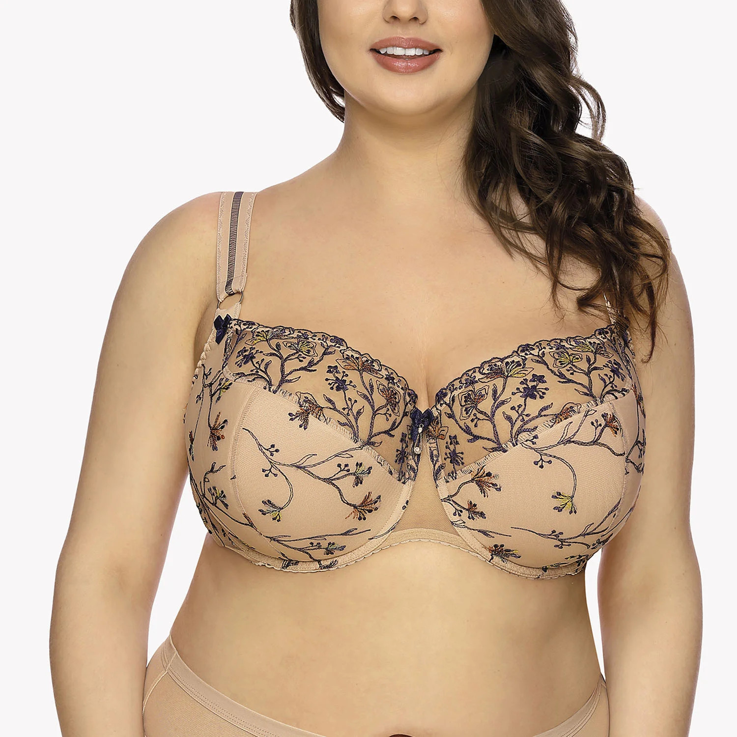 Podprsenka Gaia. Model 1062 Patricia. Má dráty, které prsa vhodně tvarují. Svislé velrybí kosti zasazené po stranách. Výrobek má nastavitelné popruhy bez možnosti odepnutí. Kovové háčky na popruh. Podprsenka se zapínáním na háčky a oči. Upevňovací bod: vzadu. Výrobek je vyroben ze 40 % z polyesteru, 37 % z polyamidu, 14 % z bavlny, 6 % z elastanu a 3 % z polyuretanu. Výrobek pro ženy.