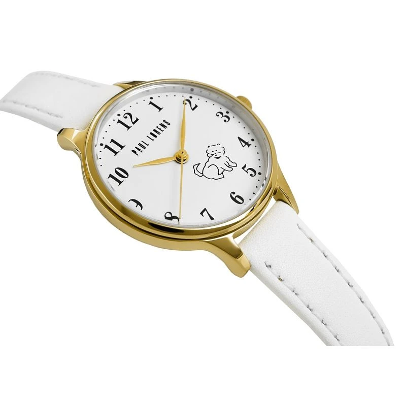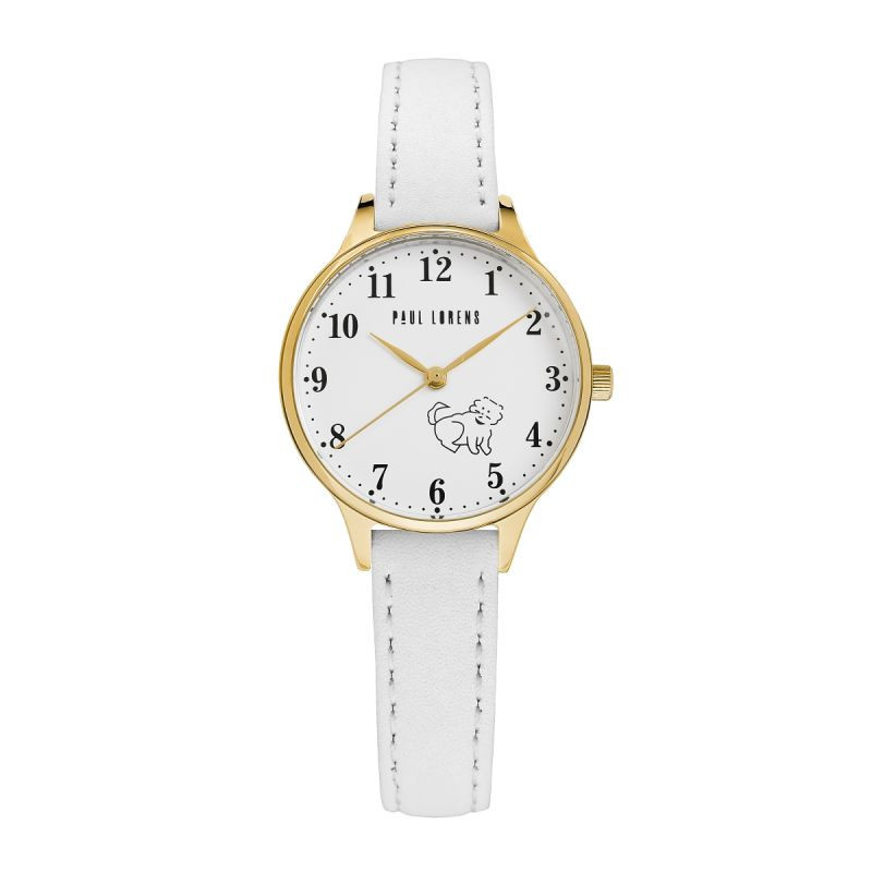 Zlatý obal ladí s bílým ciferníkem, na němž je rozkošný obrázek pejska, který hodinkám dodává hravý nádech. tento decentní design dělá z hodinek jedinečný a osobní doplněk, který bude vaše dítě nosit s hrdostí. zlaté ručičky a indexy dodávají hodinkám eleganci, zatímco díky chytře navržené vteřinové ručičce, která se ladně pohybuje, bude učení se číst čas potěšením a vzrušujícím dobrodružstvím.