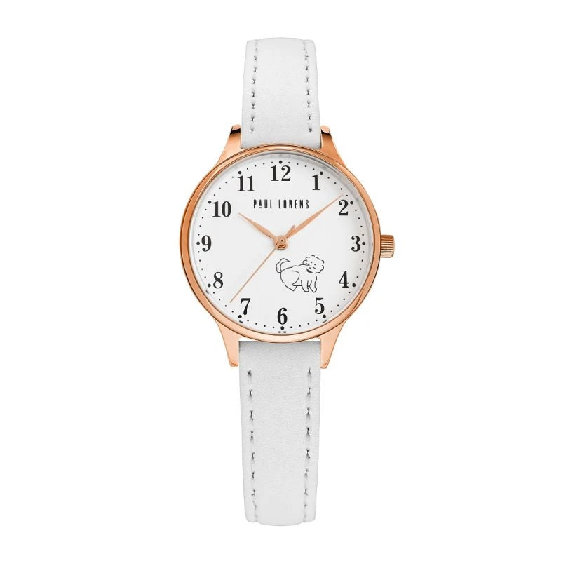 Obal z růžového zlata ladí s bílým ciferníkem, na němž je vyobrazen roztomilý obrázek pejska, který hodinkám dodává hravý nádech. Jemná grafika dělá z hodinek jedinečný a osobní doplněk, který bude vaše dítě nosit s hrdostí. Ručičky a indexy z růžového zlata dodávají hodinkám eleganci, zatímco díky chytře navržené vteřinové ručičce, která se ladně pohybuje, bude učení se číst čas potěšením a vzrušujícím dobrodružstvím.