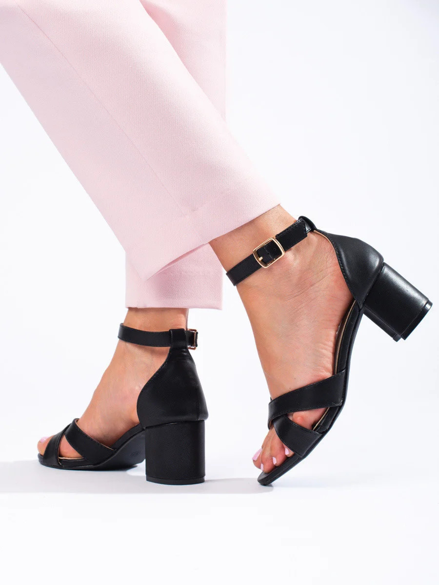 Přidání recenze k Pěkné černé dámské sandály na širokém podpatku