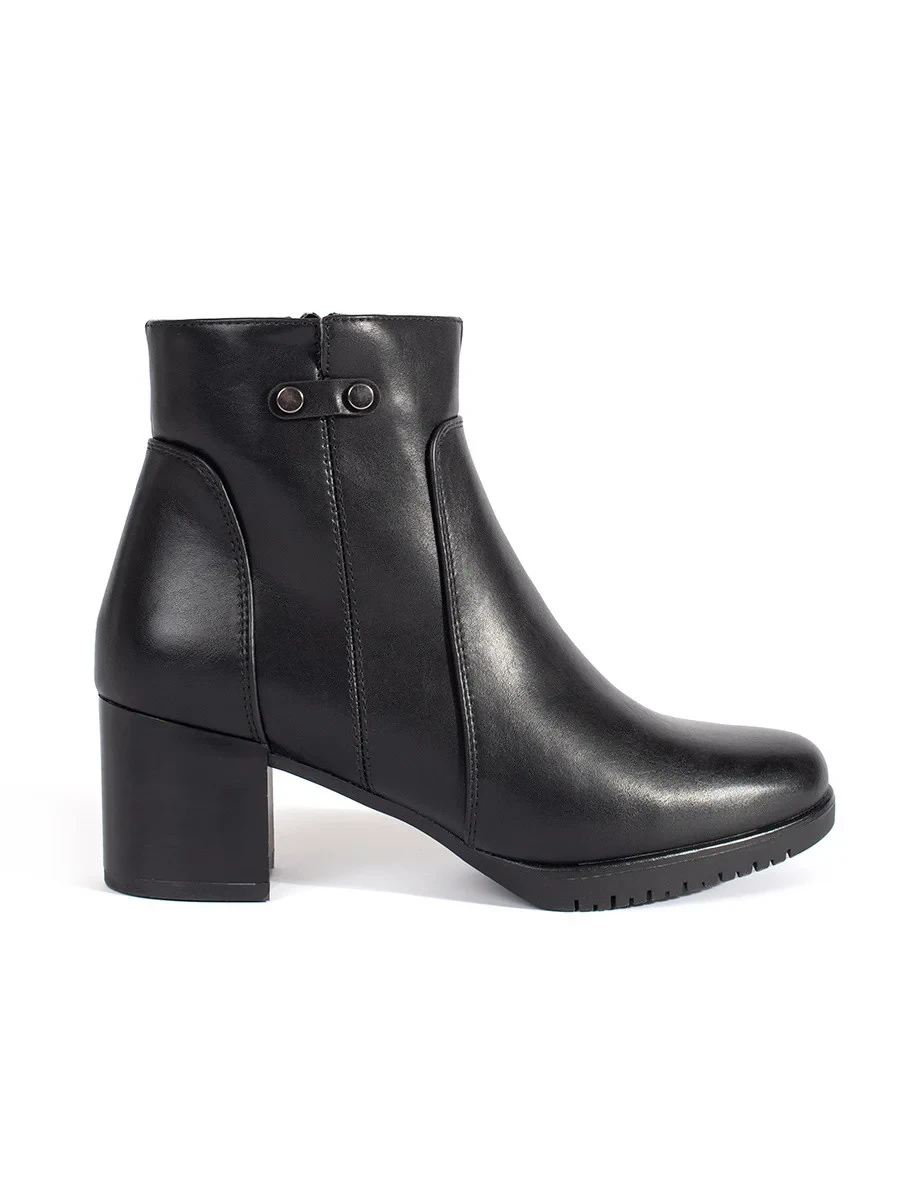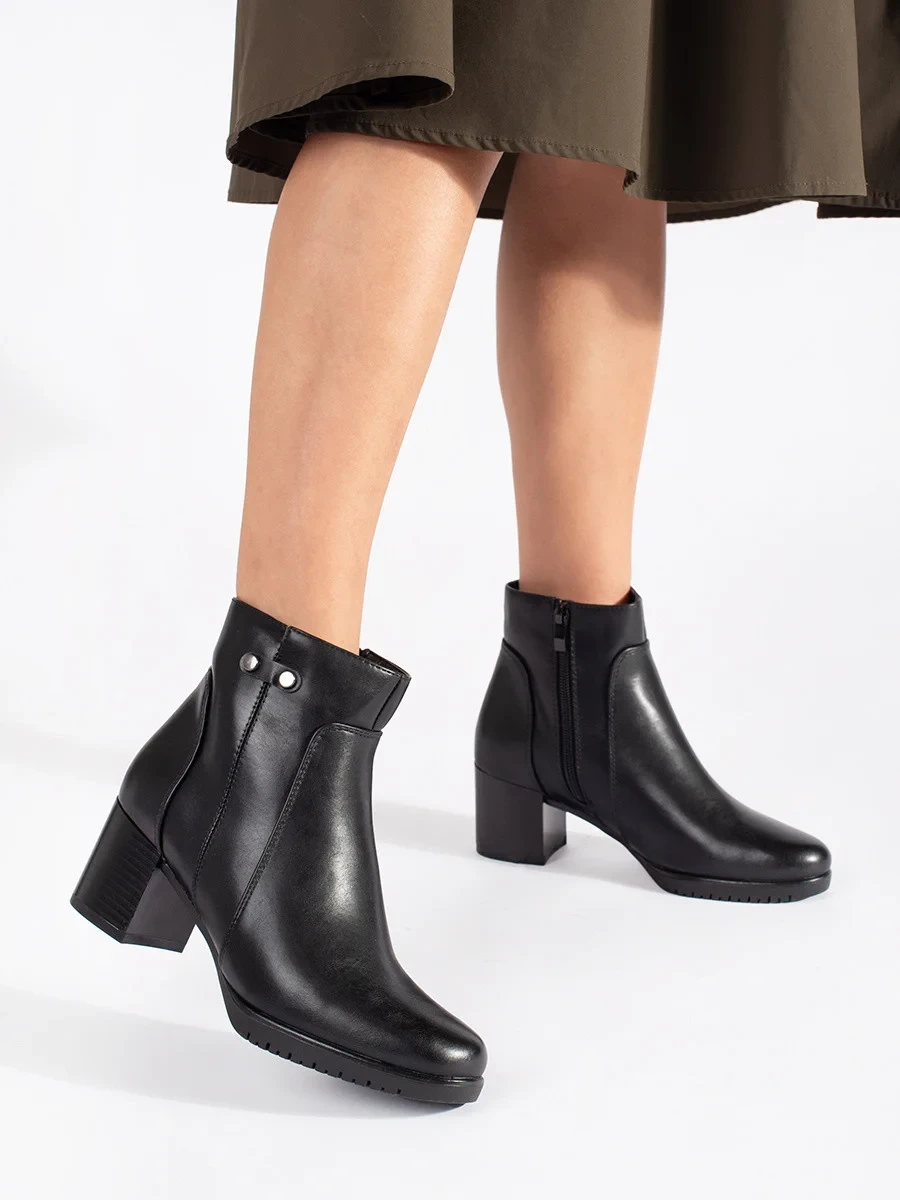 Pěkné černé kotníčkové boty dámské na širokém podpatku