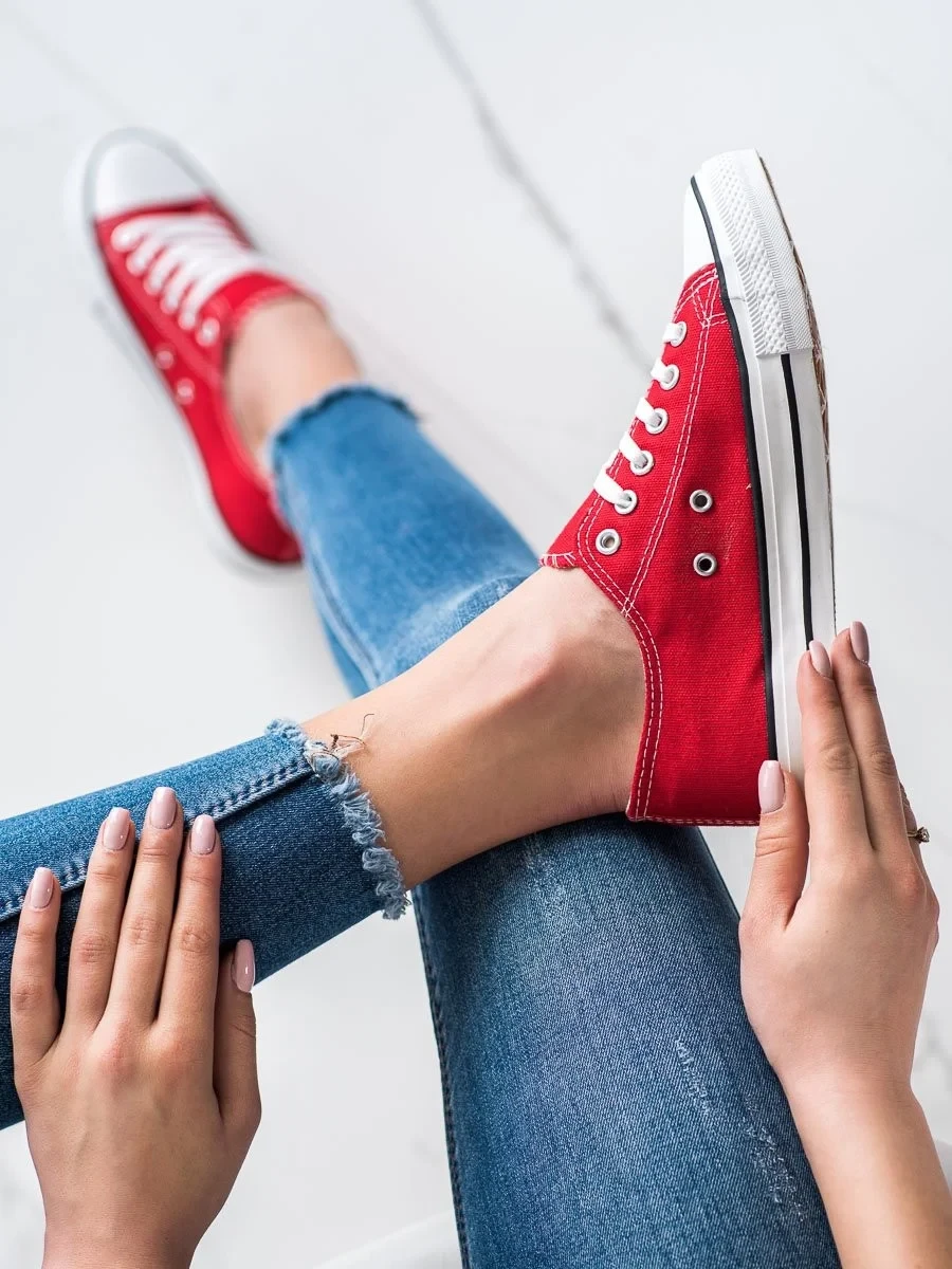 Pěkné červené tenisky dámské bez podpatku