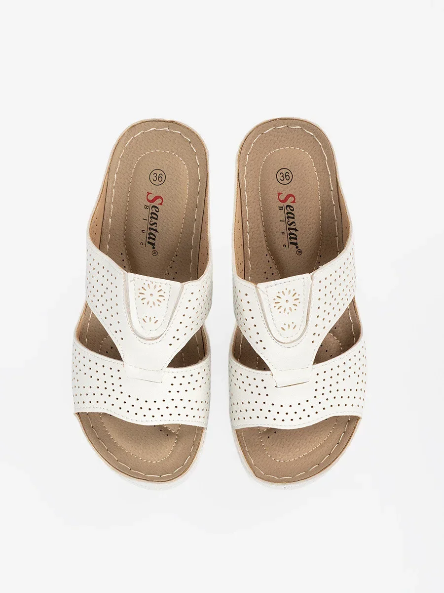 Pěkné dámské bílé nazouváky na plochém podpatku