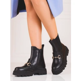 Pěkné dámské černé kotníčkové boty na plochém podpatku