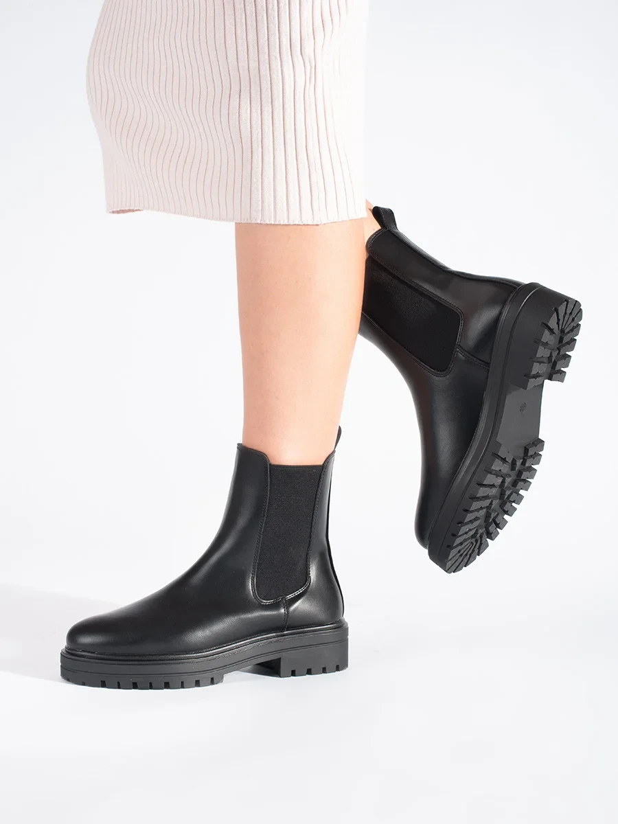 Pěkné dámské kotníčkové boty černé na plochém podpatku