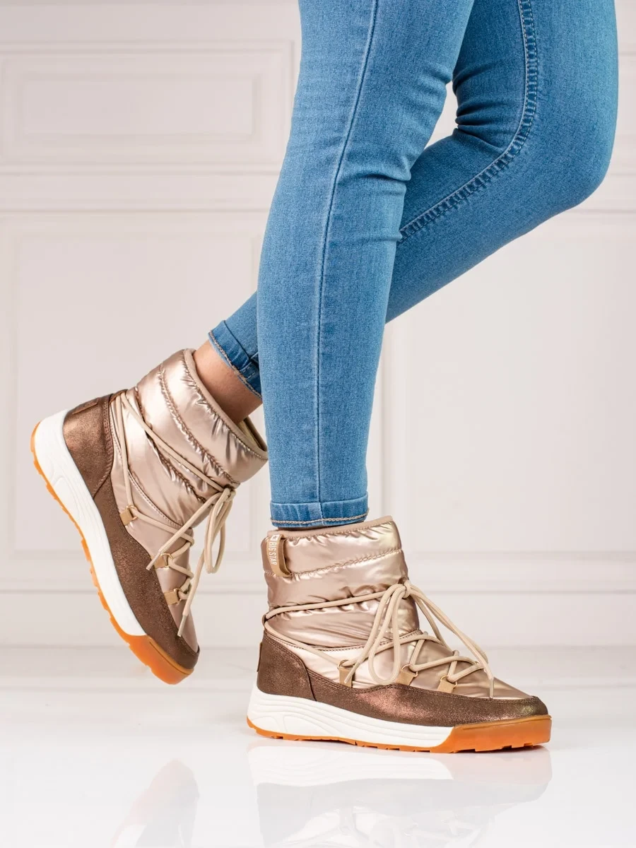 Pěkné dámské sněhule zlaté bez podpatku