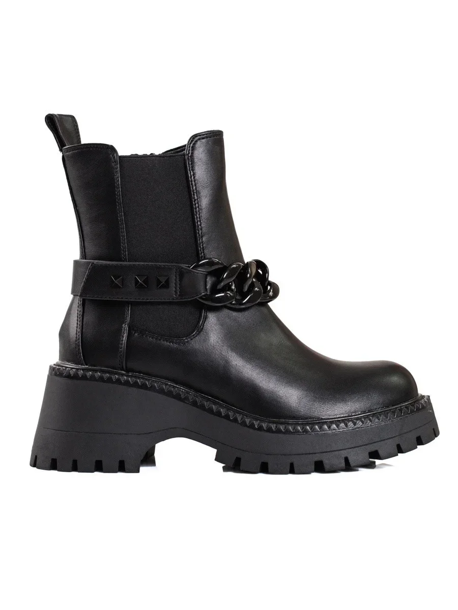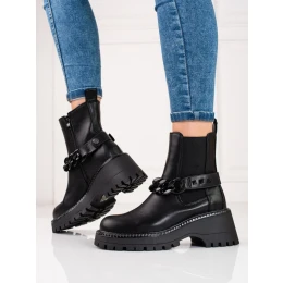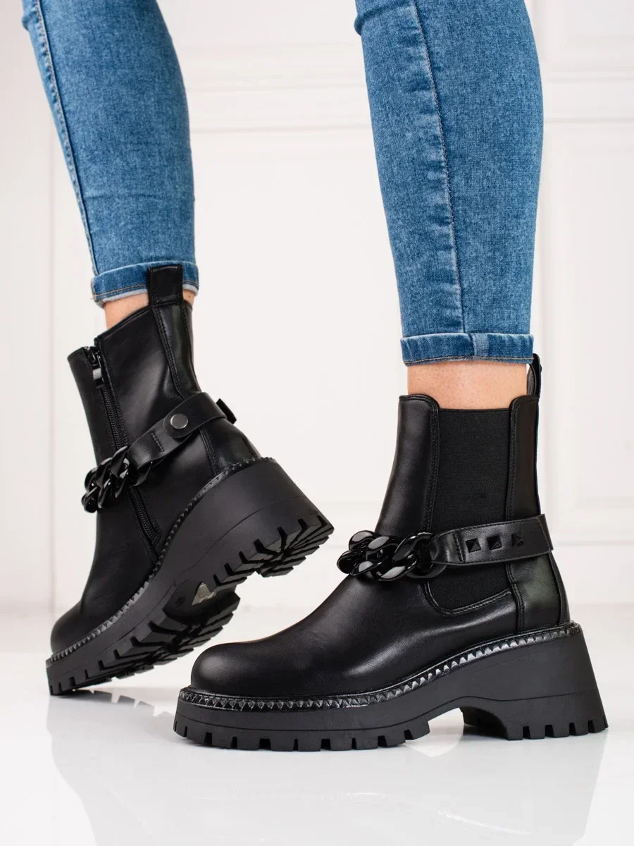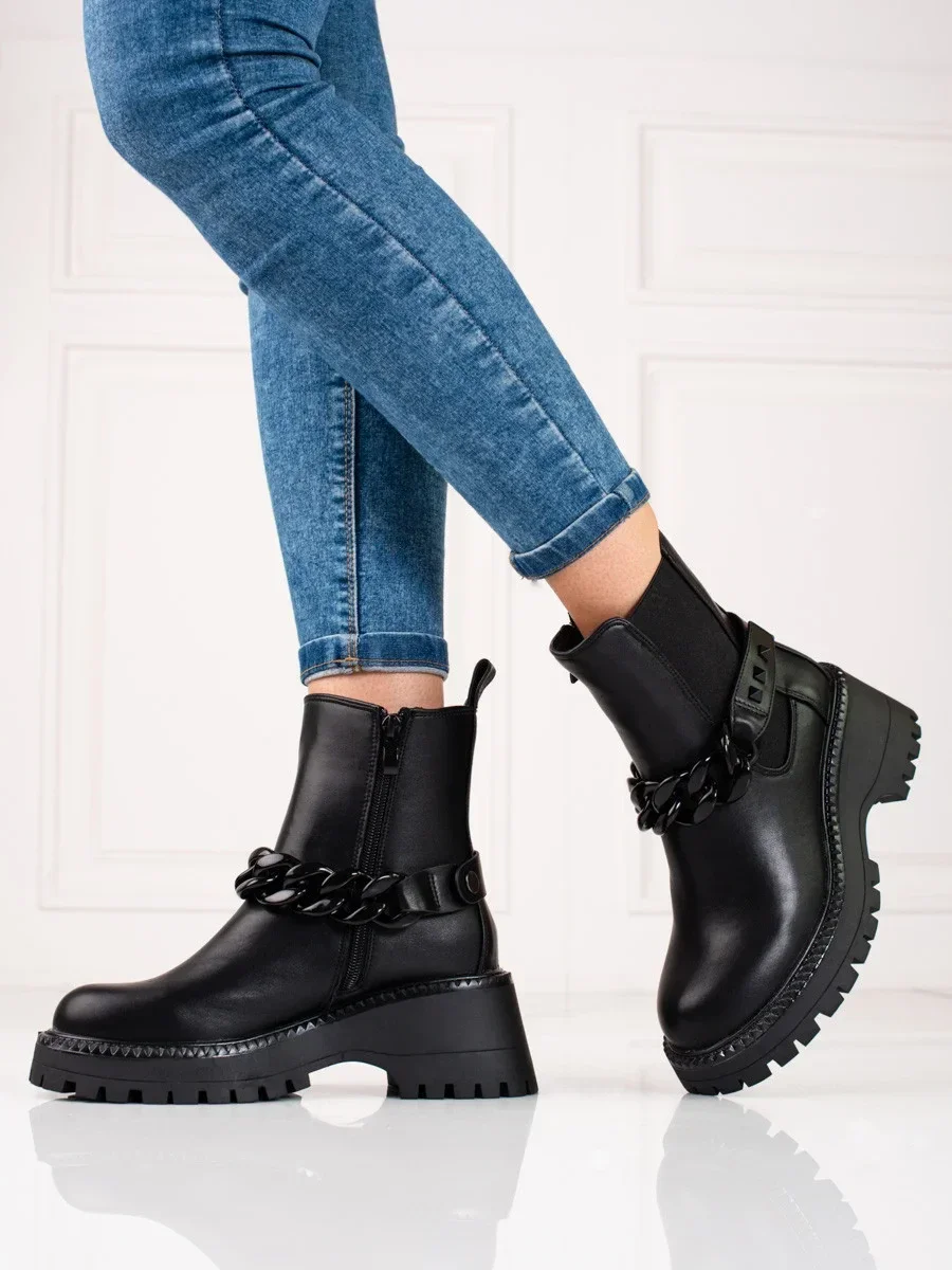 Pěkné kotníčkové boty černé dámské na plochém podpatku