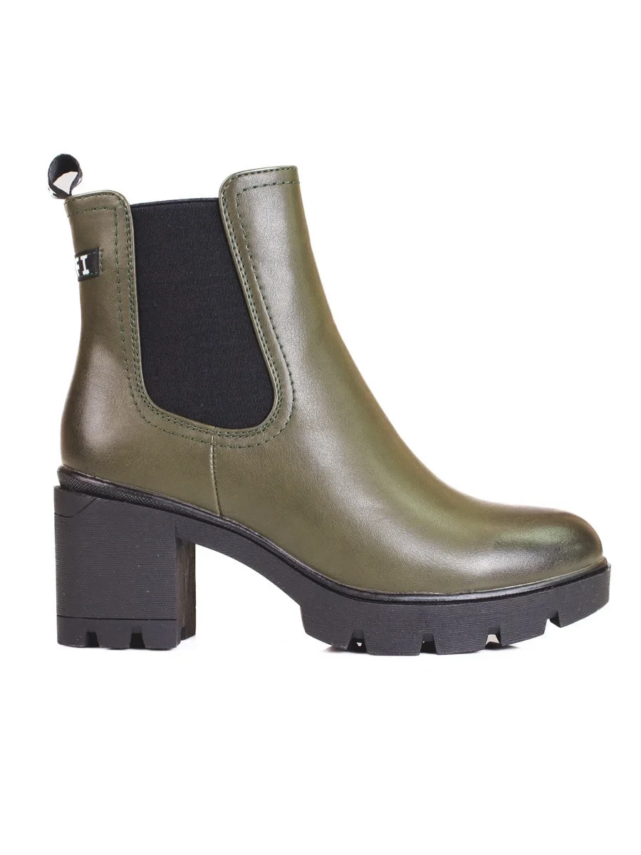 Pěkné kotníčkové boty dámské zelené na širokém podpatku