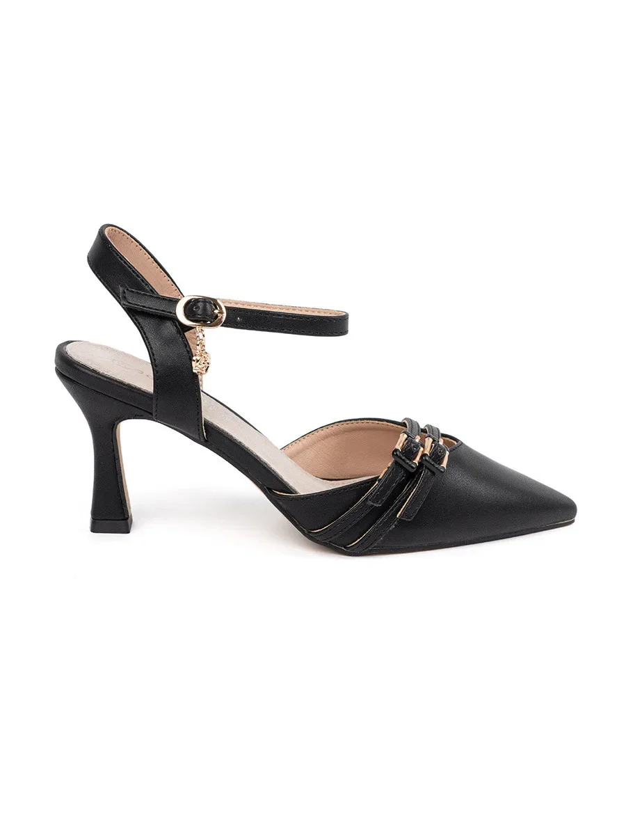 Pěkné lodičky černé dámské na jehlovém podpatku