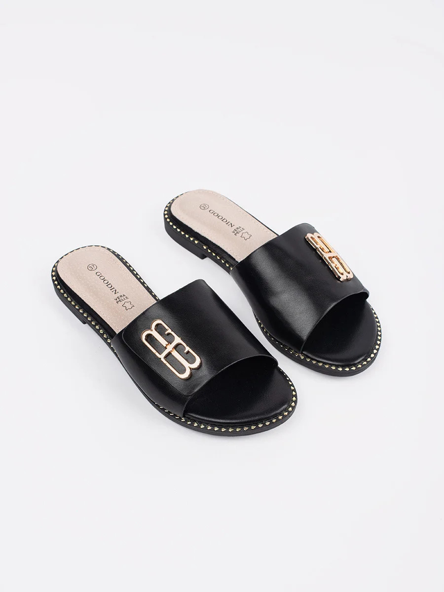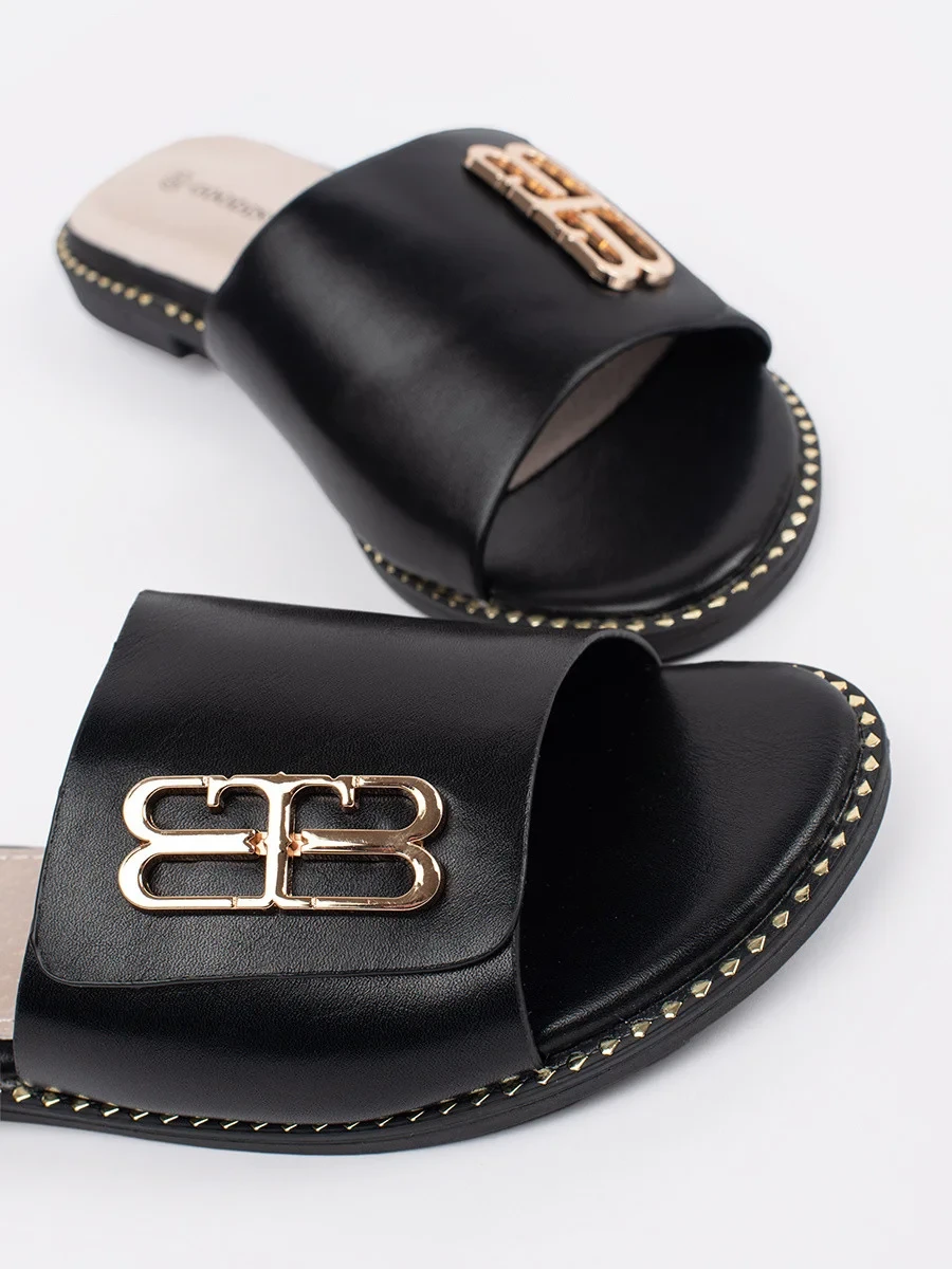 Háčkované Dámské Pantofle Na Plochém Podpatku Černé Nirina