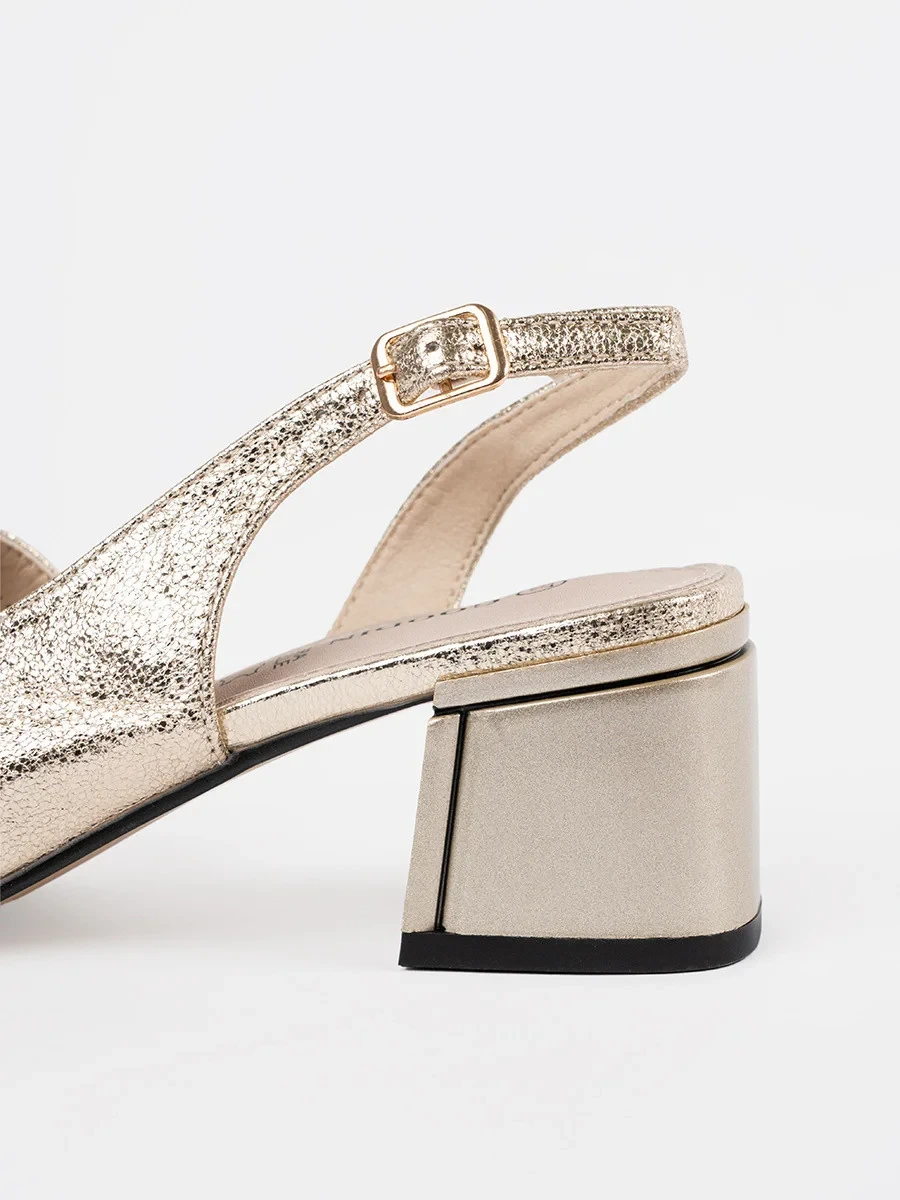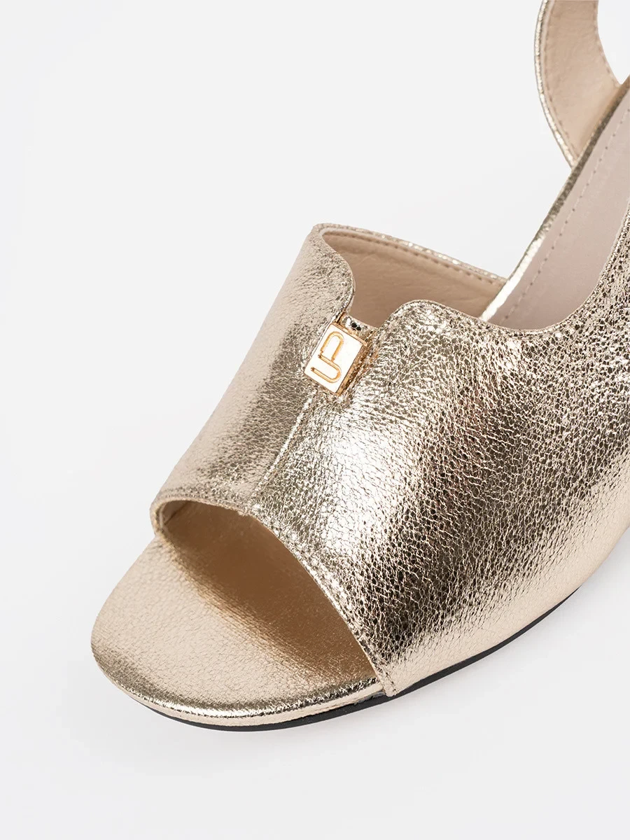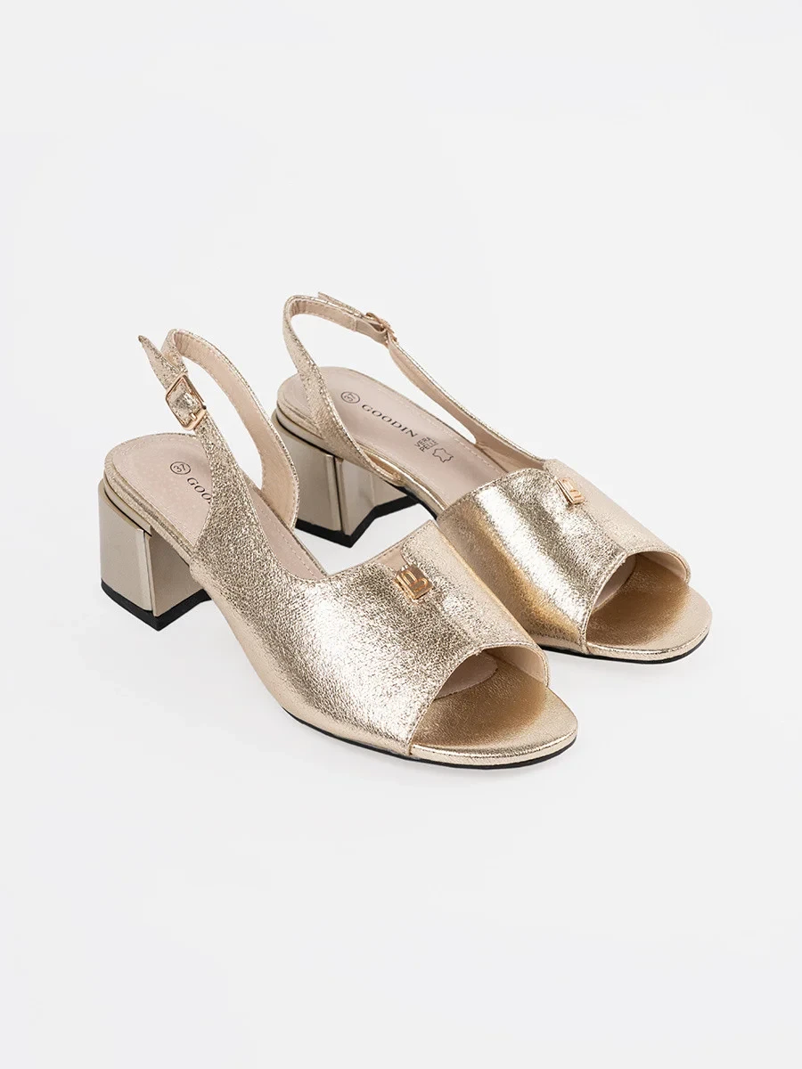 Přidání recenze k Pěkné zlaté dámské sandály na širokém podpatku