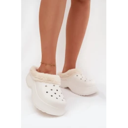 Pěnové dámské pantofle s kožešinou bílé Palvine