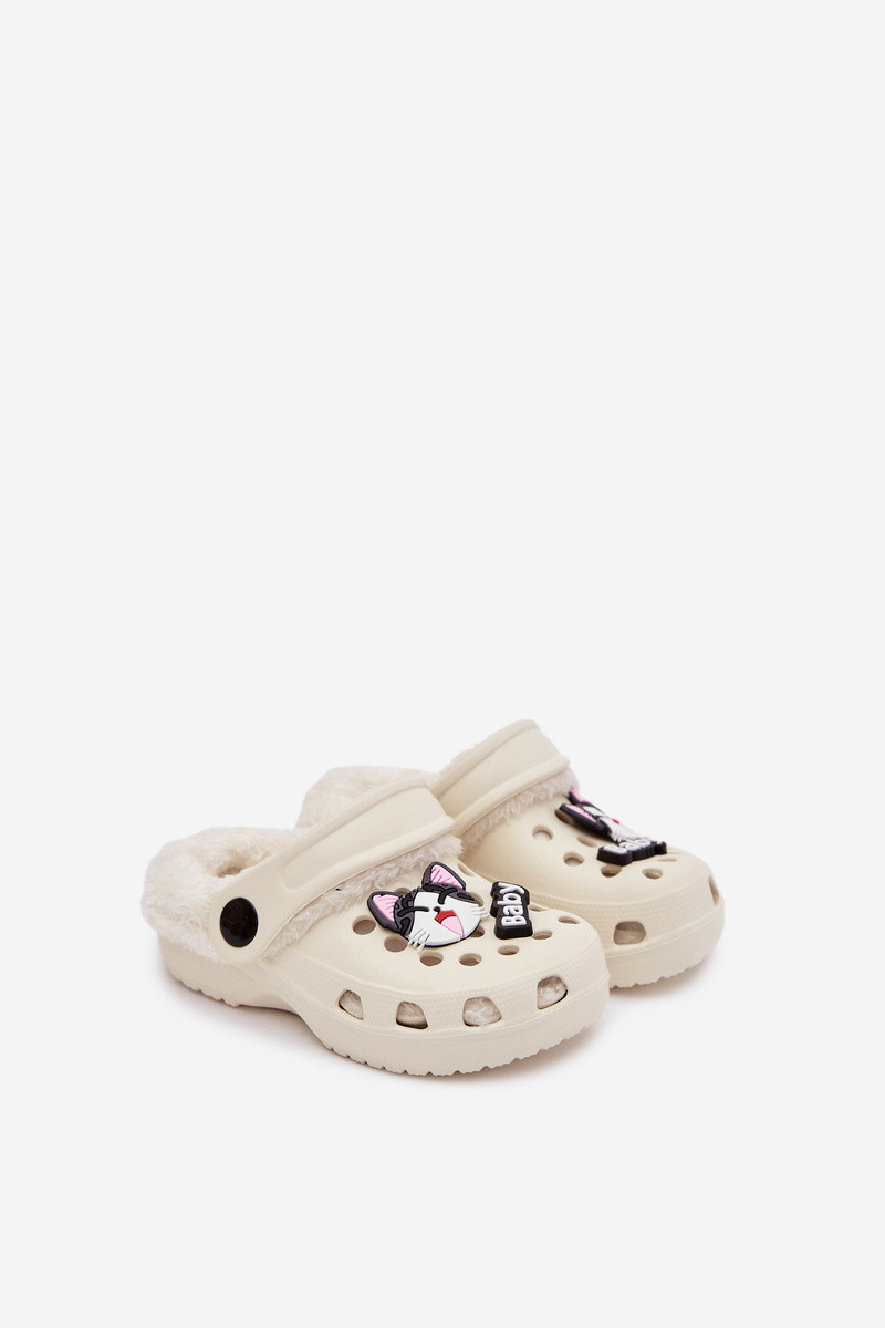 Pěnové dětské pantofle s vyhřívaným kožíškem s přezkami Krémové Cerelle