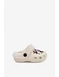 Dětské pantofle vyrobené z lehkého pěnového materiálu jsou praktickým a pohodlným modelem na každý den. Vnitřek je vyplněn měkkým kožíškem, který zajišťuje teplo a pohodlí malým nohám. Pohyblivý pásek umožňuje jejich nošení dvěma způsoby — klasicky nebo jako stabilnější obuv s páskem za patu. Celý vzhled doplňují barevné nálepky, které dodávají radostný, dětský charakter. Ideální do domu a na krátké výlety venku. Při výběru velikosti prosím řiďte se tabulkou velikostí. Při výběru velikosti se řiďte tabulkou velikostí.