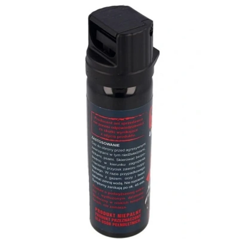 Technické detaily: Scovilleho stupnice: 4 000 000 SHU Konzistence: Zákal Množství účinné látky: 63 ml Doba účinku: 20–30 min. Ochrana proti náhodnému spuštění: Ano Koncentrace kapsaicinu a pryskyřice: 26,4 % OC Nehořlavá látka: Ano Země výroby: Německo Objem: 63 ml Systém rychlého uvolnění: Ano Rozměry (Š x D): 115 x 35 mm Typ plynu: Pepřový sprej Snadné použití: Ano Maximální dosah: 6 m Hmotnost a rozměry Hmotnost výrobku: 68 g Barva Barva výrobku: Černá Bezpečnostní upozornění Varování: