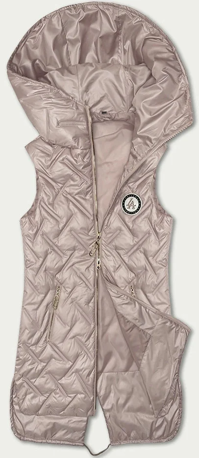 Perleťově růžová dámská prošívaná vesta s kapucí S'West (B8340-51)