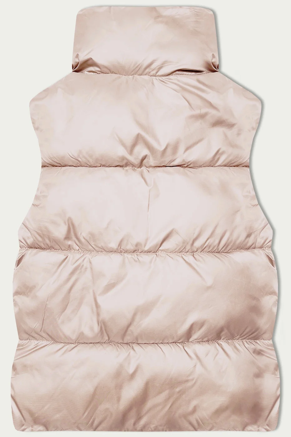 Vesta je zateplená syntetickou péřovou výplní, má stojáček, dvě kapsy bez zapínání a zapíná se zipem. Na spodním okraji modelu jsou stahující gumy. Model má délku do pasu.