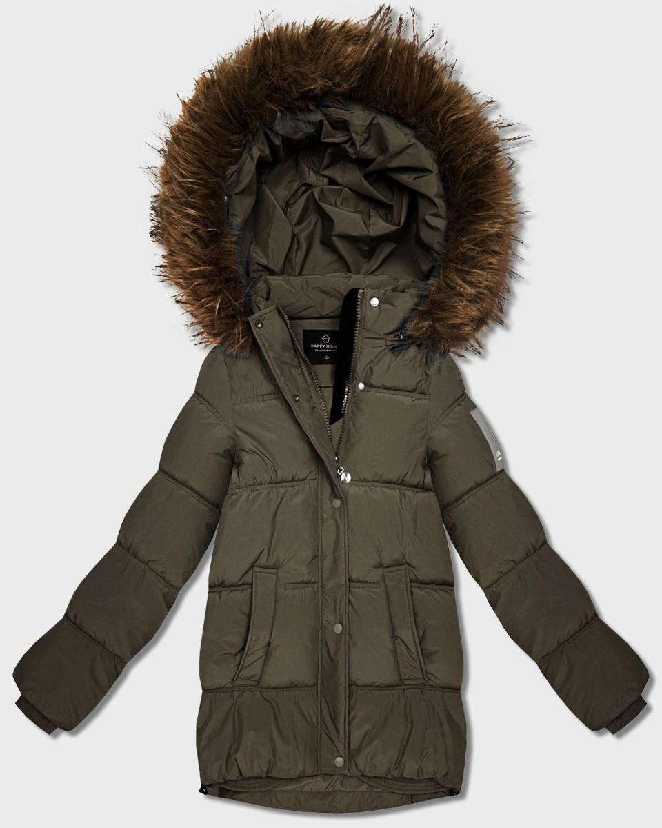 Péřová bunda v barvě khaki s kapucí (KK60610)
