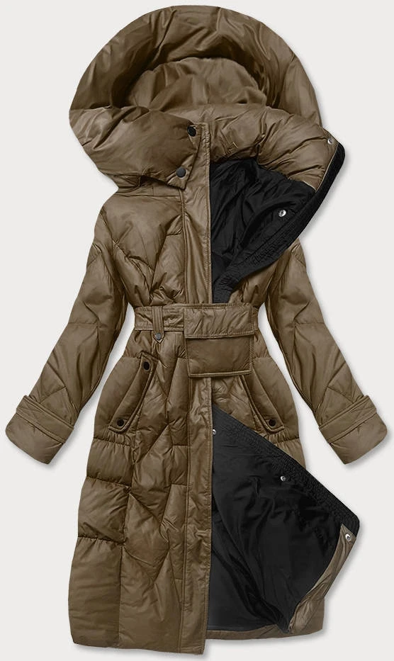Péřová bunda v olivové barvě se stojáčkem a kapucí model 21244376 - Ann Gissy