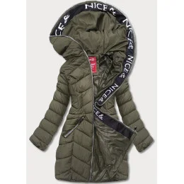Péřová dámská bunda v khaki barvě pro přechodné období (2M-001)