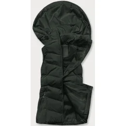 Péřová dámská vesta v army barvě s kapucí (5M720-136)