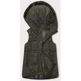 Péřová dámská vesta v khaki barvě (B8153-11)