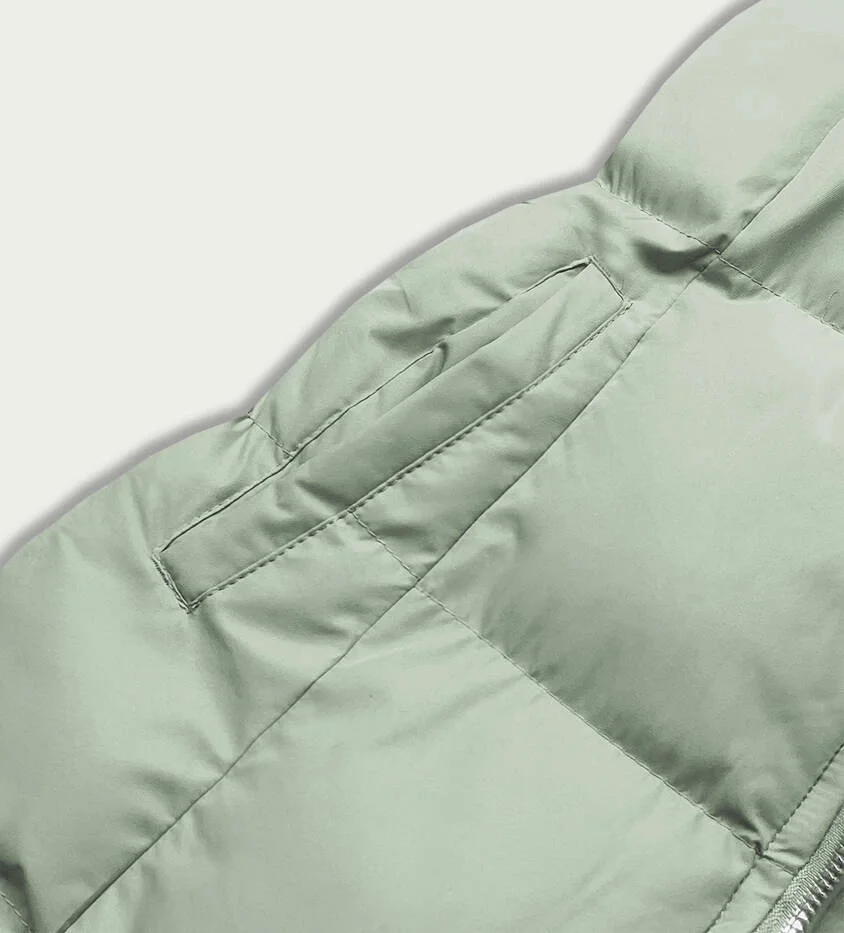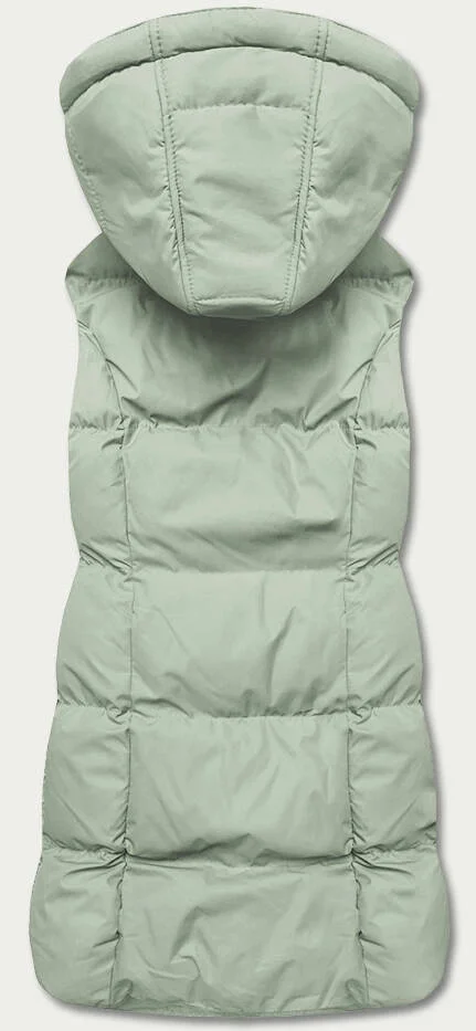 Péřová dámská vesta v pistáciové barvě s kapucí model 17655328 - J.STYLE
