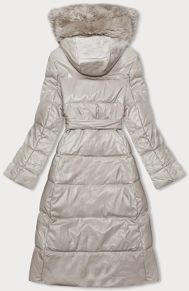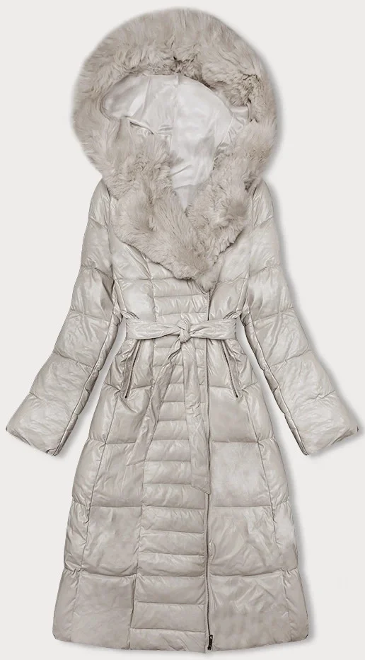 Péřový kabát z eko kůže v barvě ecru s kožešinou Ann Gissy (AG9-9003)