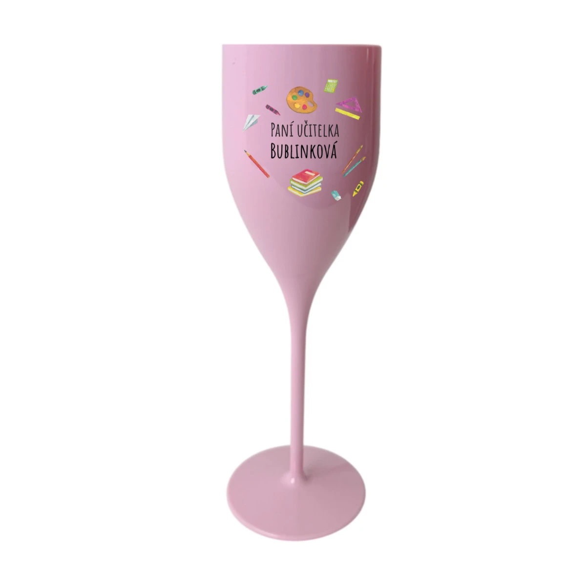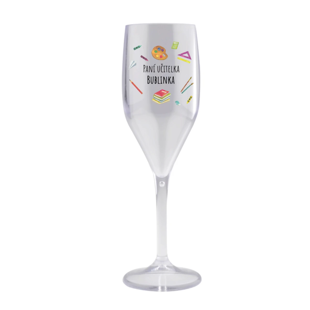 Personalizovaná nerozbitná prosecco sklenice pro paní učitelku/pana učitele (pomůcky)