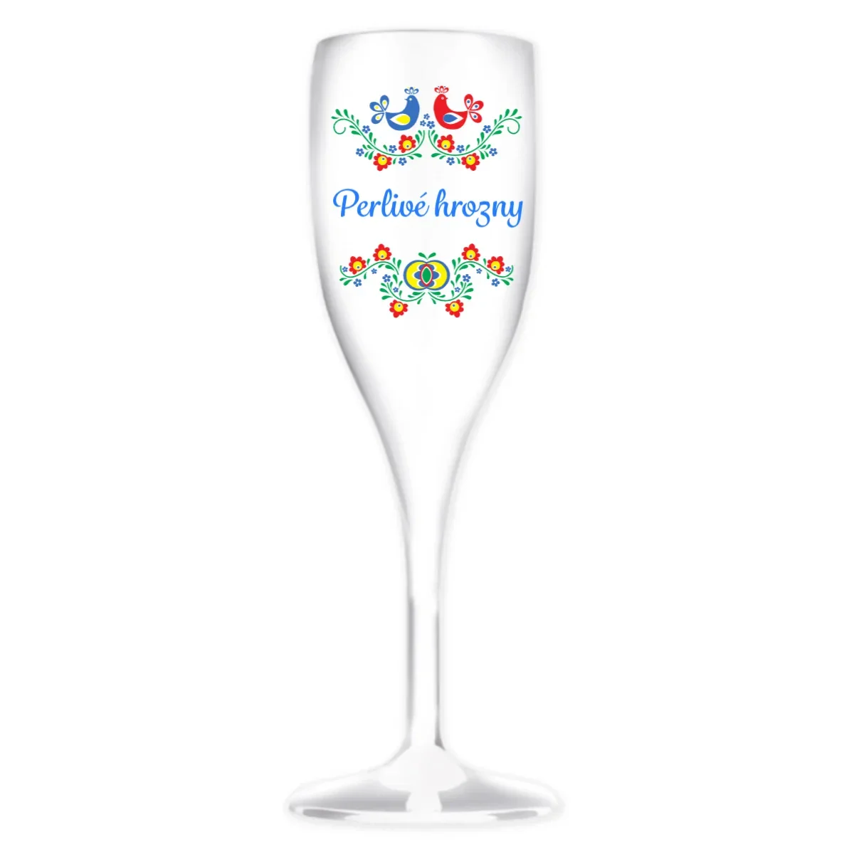 Folklórní prosecco sklenice – nerozbitná, bílá a jen tvoje