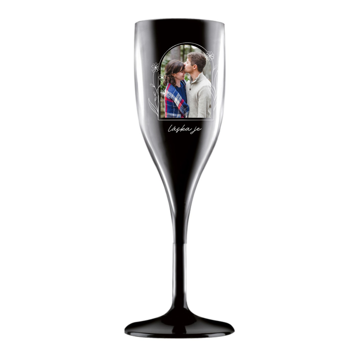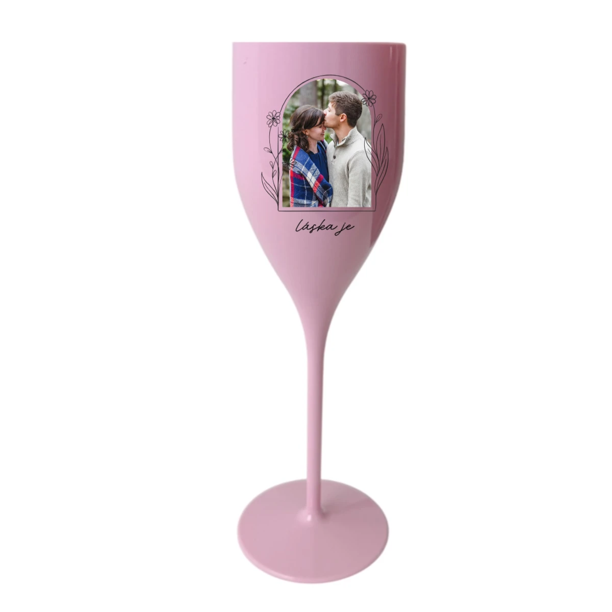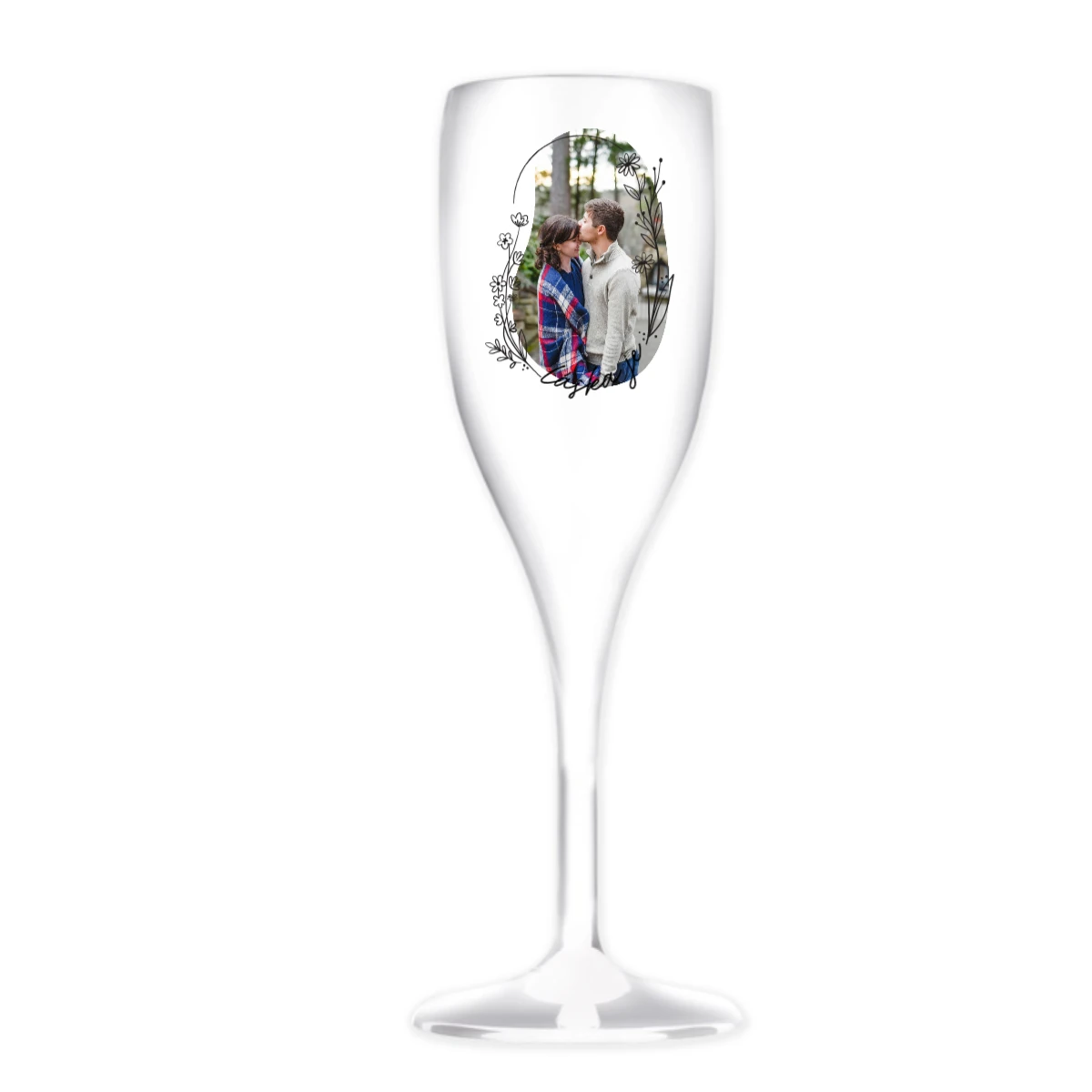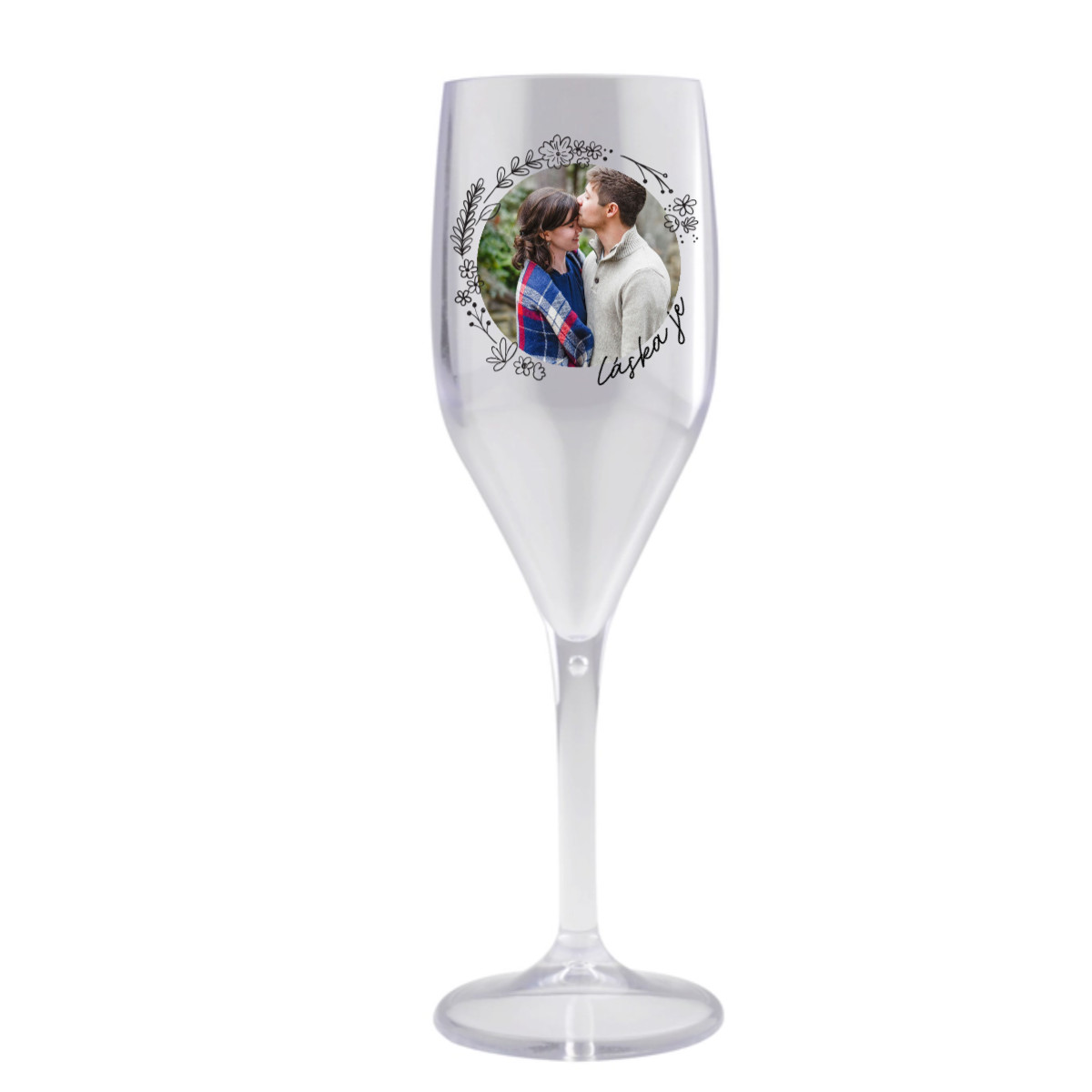 Personalizovaná nerozbitná prosecco sklenice s květinový ohraničením