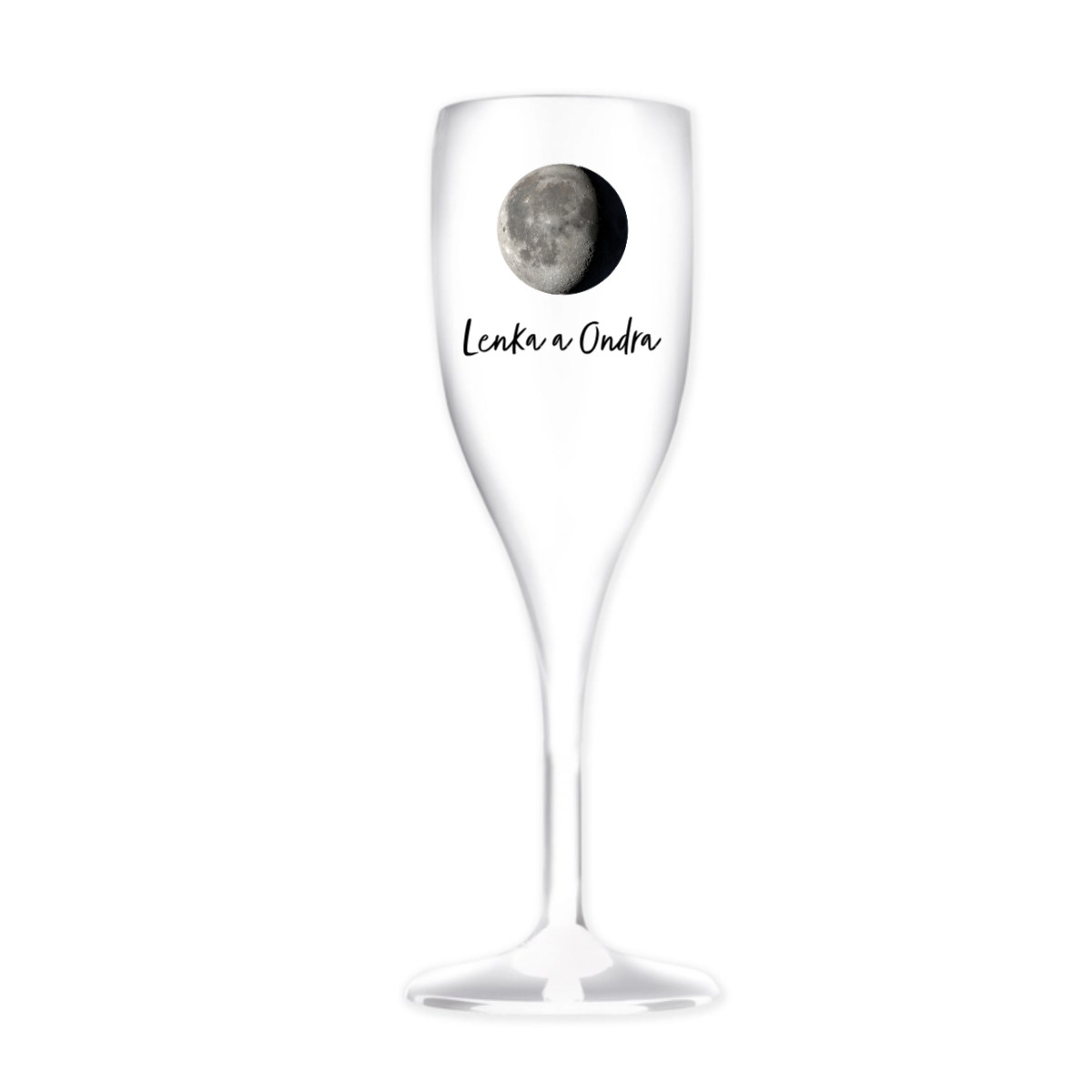 Personalizovaná nerozbitná prosecco sklenice s měsíční fází